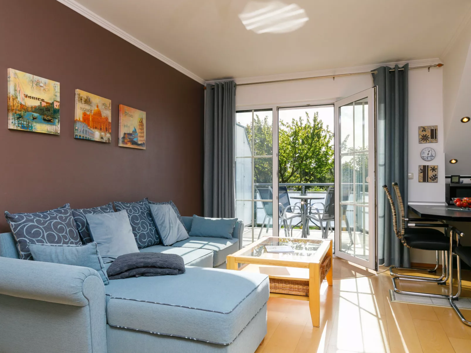 "Müller (App. 11)", maisonette 3-kamers 65 m2 op 2 verdiepingen op de 1e verdieping. Afgeschuinde daken, smaakvol en gezellig ingericht: woon-/eetkamer met Kabel-TV (Flatscreen TV), radio en DVD. Uitgang naar het balkon. 1 kamer met 1 2-pers bed. Kookhoek (oven, afwasmachine, 4 keramische glas kookplaten, broodrooster, waterkoker, magnetron, elektrische koffiemachine). Bad/WC. Zolderverdieping: 1 kamer met 2 bedden en Kabel-TV (Flatscreen TV). Balkon. Balkonmeubilair. Ter beschikking: kinderstoel, kinderbed. Internet (Internet (WiFi), gratis). Parkeerplaats (1 Auto) bij het huis. Niet rokers woning. Rookmelders.