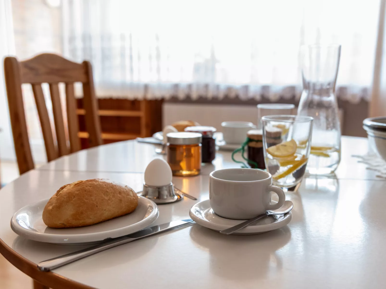 Appartement 2-kamers 40 m2 op de 1e verdieping. Doelmatig en gezellig ingericht: woon-/eetkamer 18 m2 met 1 2-pers divanbed (160 cm, lengte 195 cm), Kabel-TV en CD-speler. Uitgang naar het balkon. 1 kamer 10 m2 met 2 bedden (90 cm, lengte 200 cm). Kookhoek (2-pits kookplaat, broodrooster, waterkoker, magnetron, elektrische koffiemachine). Douche/WC. Balkon 8 m2. Balkonmeubilair. Ter beschikking: kinderstoel. Niet rokers woning.