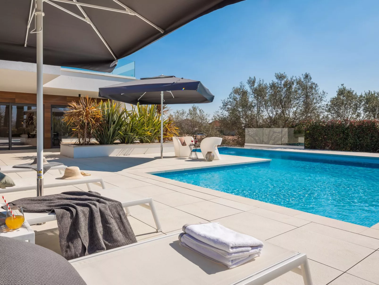 Vodnjan: Moderne villa "Old Olive I", van 3 verdiepingen. In het gehucht Salvela, 1 km van het centrum van Vodnjan, 7 km van het centrum van Fažana, 10 km van het centrum van Pula, zonnige ligging, 7 km van zee. Voor alleengebruik: terrein 1.000 m2 (omheind), tuin met planten en bomen, openluchtzwembad (65 m2, 30 - 140 cm diepte, seizoensgebonden beschikbaarheid: 01.Mrt. - 01.Nov.) met trap. Onregelmatig zwembad. WC bij het zwembad, buitendouche, hot tub, barbecue. In het huis: internetaansluiting, sauna, tafeltennis, biljart, tafelvoetbal, wasmachine, droger. Parkeerplaats (voor 3 auto's) bij het huis op het terrein. Winkel 1 km, supermarkt 1 km, restaurant 1.5 km, bushalte 1.4 km, kiezelstrand 7 km, strandbad 7 km. Golfterrein (18 holes) 7 km, tennis 2 km. Attracties in de buurt: NP Brijuni 7 km, Amphitheater 11 km. Groepen jongeren uitsluitend op aanvraag.