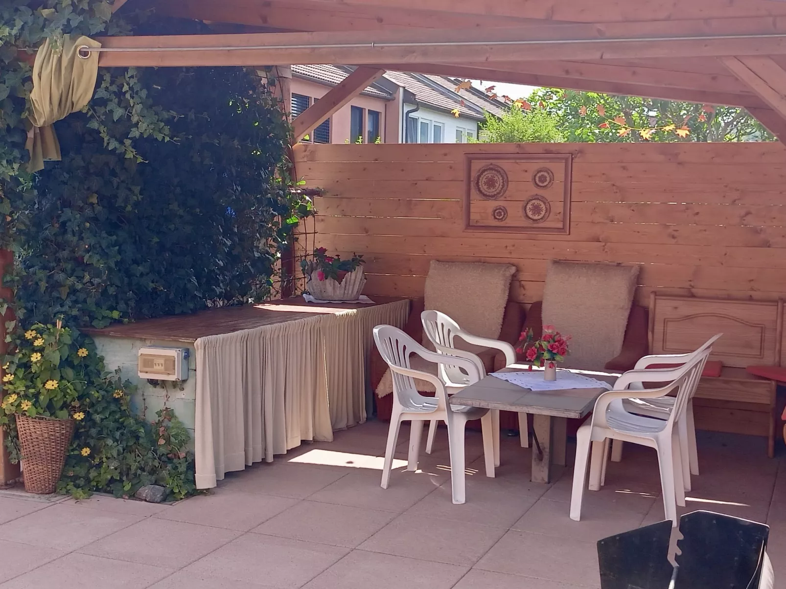 Huis in een rij 4-kamers 96 m2 op 2 verdiepingen. Hal. Uitgang naar de tuin, naar het terras, naar het zwembad. 1 kamer met 1 2-pers bed (160 cm). Douche/WC. Bovenverdieping: groot woon-/eetkamer met 1 divanbed, eettafel en TV (Flatscreen TV). 2 kamers, elke kamer heeft 1 2-pers bed. Groot keuken (oven, afwasmachine, 4 keramische glas kookplaten, magnetron, diepvriezer, elektrische koffiemachine). Douche/WC. Boiler (120 liter). Ter beschikking: kinderstoel. Internet (Internet (WiFi), gratis). Geschikt voor families. 2 kleine huisdieren/honden toegestaan. Brandblusser.