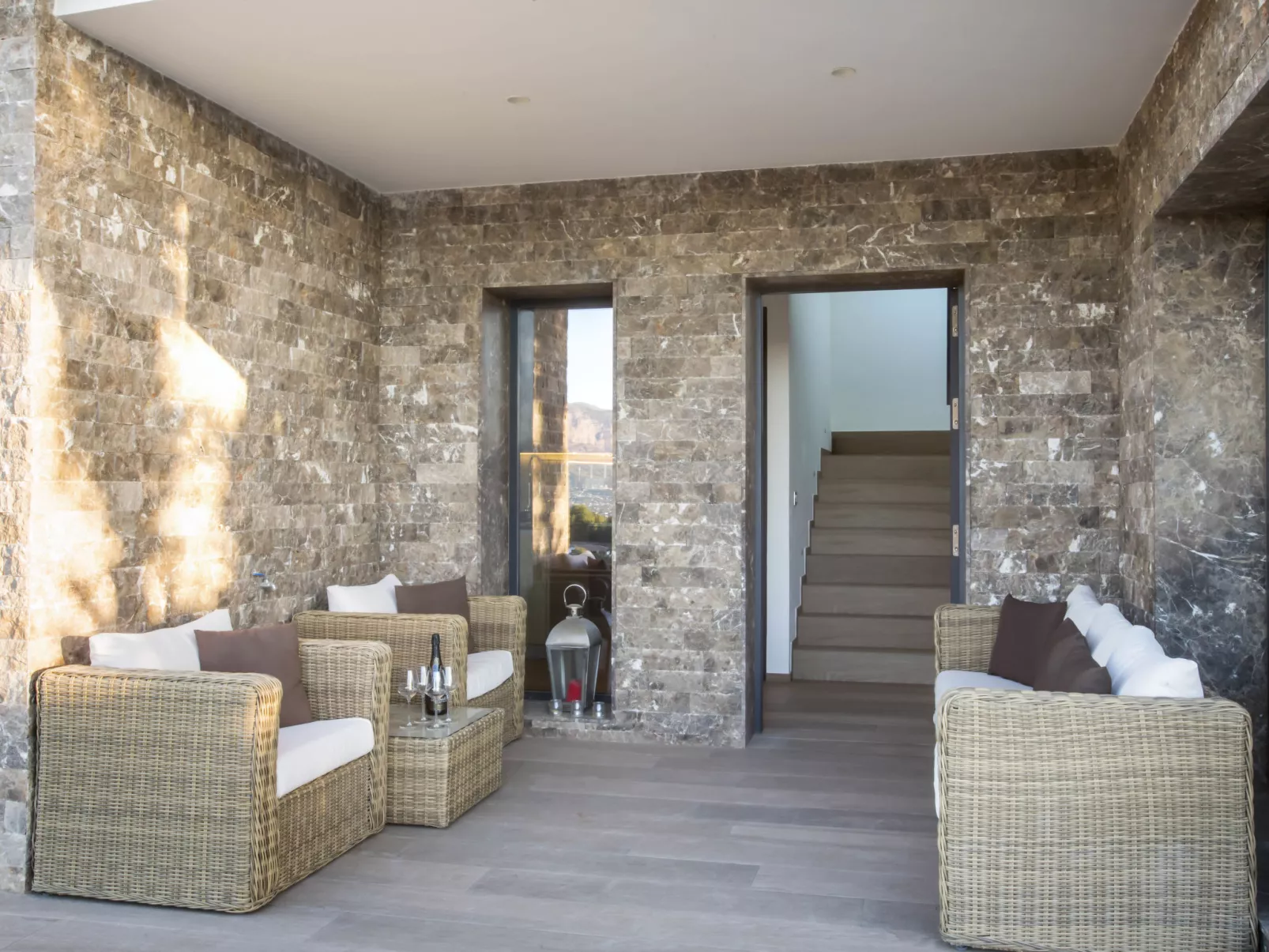 Zeer groot, zeer moderne, luxueuze villa "Orion", van 3 verdiepingen. In de wijk Villas del Vent, 5 km van het centrum van Jávea - El Arenal, 8 km van het centrum van Moraira, rustige, zonnige ligging, 5 km van zee, 5 km van het strand. Voor alleengebruik: groot, mooie, verzorgde tuin op verschillende niveaus planten en bomen, openluchtzwembad hoekig (10 x 4 m, 140 - 160 cm diepte, seizoensgebonden beschikbaarheid: 01.Jan. - 31.Dec.) met trap. Buitendouche, hot tub, prieel, terras, tuinmeubelen, barbecue. In het huis: zonneterras, centrale verwarming, air-conditioning, wasserette, wasmachine. Berging beschikbaar. Supermarkt 2.5 km, restaurant 1 km, bar 2.5 km, bakkerij 2.5 km, café 2.5 km, bushalte "Parada antiguo Mas y Mas" 4.4 km, zandstrand "El Arenal" 5 km, stenenstrand "La Granadella" 10 km. Jachthaven 6 km, jachthaven 6 km, golfterrein (9 holes) 3 km, surfschool 5 km, zeilschool 5 km. Auto noodzakelijk. De eigenaar accepteert geen jeugdgroepen.