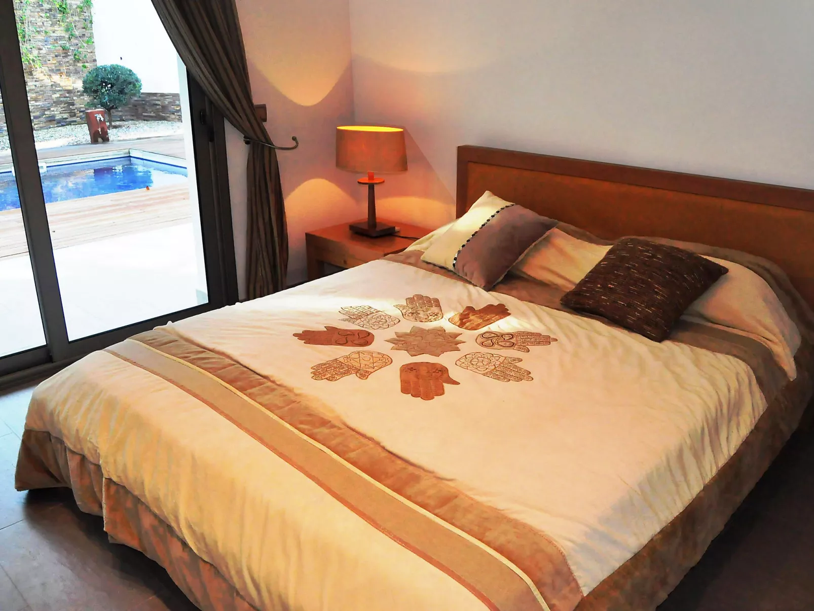 "Palmbeach", villa 6-kamers 520 m2. Ruim en licht, zeer comfortabel en modern ingericht: woon-/eetkamer met open haard (alleen decoratie), Sat-TV, Digitale TV, air-conditioning en elektrische rolluiken. Uitgang naar de zitplaats in de tuin, naar het zwembad. 2 2-pers. kamers, elke kamer heeft 1 2-pers bed (160 cm, lengte 190 cm). Uitgang naar de zitplaats in de tuin, naar het zwembad. Groot, open keuken (oven, afwasmachine, 4 keramische glas kookplaten, broodrooster, waterkoker, magnetron, diepvriezer, elektrische koffiemachine, kookeiland) met eettafel. Bad/bidet/WC, aparte WC. Elektrische verwarming, air-conditioning. Bovenverdieping: 1 kamer met 1 2-pers bed (160 cm, lengte 190 cm). Uitgang naar het terras. 1 2-pers. kamer met 1 2-pers bed (190 cm, lengte 200 cm). Uitgang naar het terras. Douche/bidet/WC. Zithoek in de tuin. Terrasmeubelen, barbecue, ligstoelen (6). Zeer mooi uitzicht op zee. Ter beschikking: wasmachine, kinderstoel, kinderbed tot 2 jaar, haardroger. Internet (WiFi, gratis). Garage (2 Auto's). Geschikt voor families. Alleen gezinnen. HUTG016590