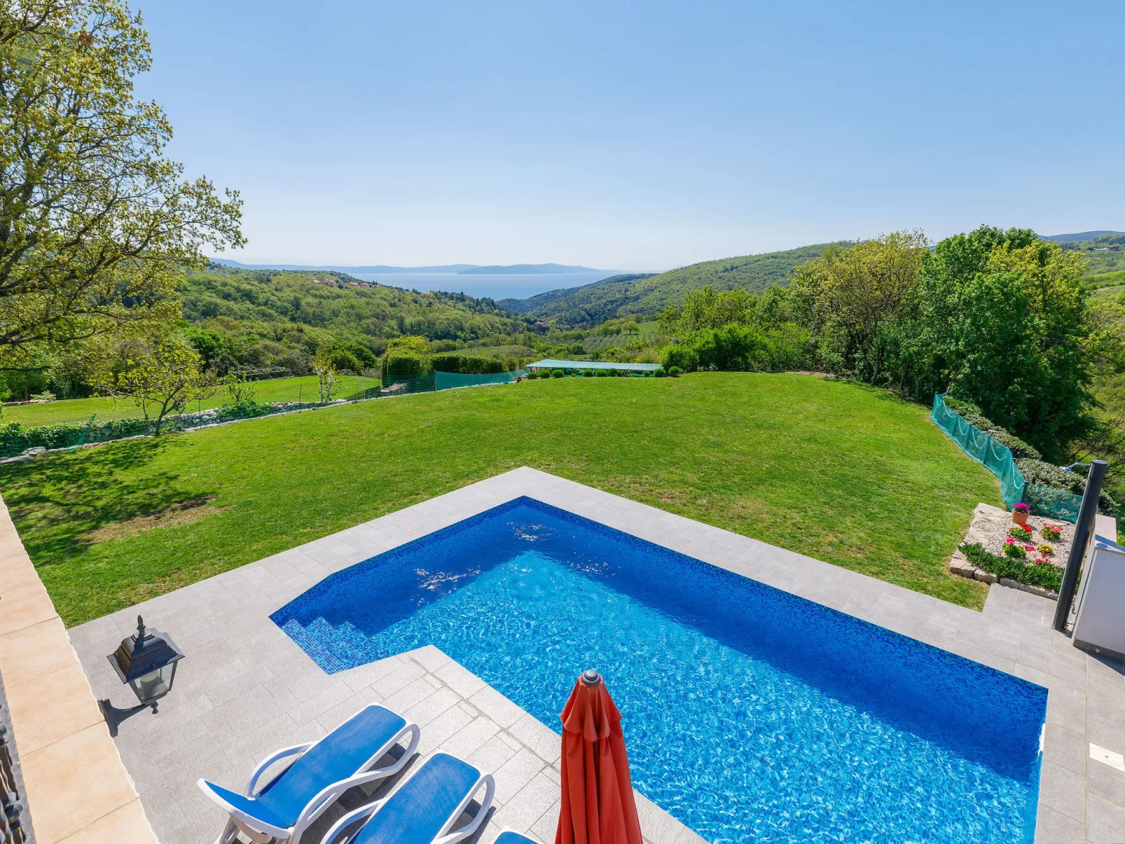 Mooi eengezinswoning "Panorama 1", van 2 verdiepingen. In de wijk Čekadi, 700 m van het centrum van Labin, rustige, zonnige, verhoogde ligging, 5 km van zee, te midden van groen. Voor alleengebruik: terrein 800 m2 (omheind), mooie tuin met gazon en planten, openluchtzwembad hoekig, verwarmd (8 x 4 m, 140 cm diepte, seizoensgebonden beschikbaarheid: 01.Jan. - 31.Dec.) met trap. Buitendouche, terras (15 m2), barbecue, onderhoud zwembad door de eigenaar/tuinman. In het huis: internetaansluiting, sauna (extra). Hot tub (extra). Ontspanningsruimte, spa centrum (extra), wasmachine. Parkeerplaats bij het huis op het terrein. Winkel 300 m, supermarkt 1.2 km, restaurant 1.2 km, bushalte 1.1 km, kiezelstrand 5 km. Manege 3 km, wandelroutes 100 m vanaf het huis, fietspad 150 m.