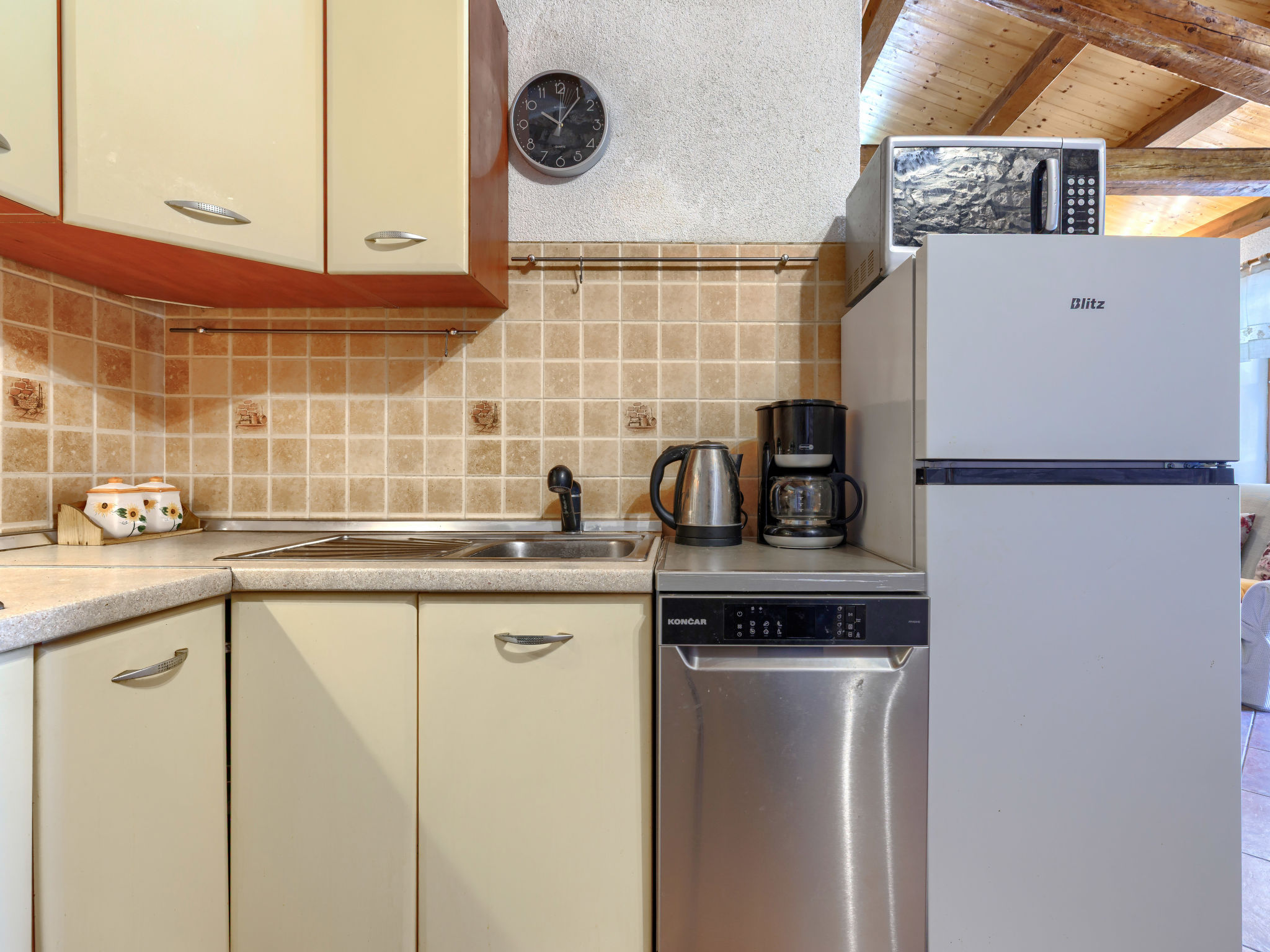 "Pinezici", huis in een rij 2-kamers 48 m2 op 2 verdiepingen. 1 kamer met 1 2-pers bed (180 cm, lengte 200 cm). Eetkamer. Uitgang naar de veranda. Bovenverdieping: (wenteltrap) woon-/slaapkamer met 1 x 2 stapelbedden, eettafel, Sat-TV en air-conditioning. Open keuken (1 kookplaat, 3 kookpitten (vlammen), broodrooster, waterkoker, magnetron, diepvriezer, grill, elektrische koffiemachine). Douche/WC. Geen verwarmingsmogelijkheid. Terras 15 m2, overdekt. Terrasmeubelen, barbecue. Ter beschikking: Internet (Internet (WiFi), gratis). Rookvrij huis. Maximaal 1 huisdier/hond toegestaan. Veranda (18 m2).