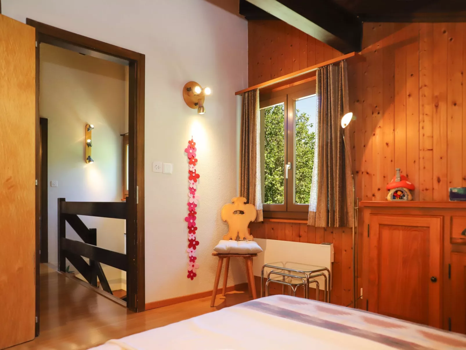 "Chalet Praline", chalet 4-kamers 100 m2 op 2 verdiepingen. Eenvoudig ingericht: woon-/eetkamer met open haard, Kabel-TV en Flatscreen TV. Uitgang naar het terras, op het zuiden. Kleine keuken (4-pits kookplaat, oven, afwasmachine, broodrooster, waterkoker, magnetron, elektrische koffiemachine, pads voor de koffiemachine (Nespresso) extra, raclette oven, fondue Set (kaas)). Aparte WC. Elektrische verwarming. Bovenverdieping: 1 kamer met afgeschuinde daken met 1 2-pers bed (160 cm, lengte 200 cm). Uitgang naar het balkon, op het zuiden. 1 kamer met afgeschuinde daken met 2 bedden (2 x 90 cm, lengte 200 cm). Uitgang naar het balkon, op het zuiden. 1 kamer met afgeschuinde daken met 1 2-pers bed (140 cm, lengte 190 cm). Bad/bidet/WC. Parketvloeren. Terras, op het zuiden gelegen, gazon 130 m2. Terrasmeubelen, barbecue, ligstoelen (2), bergruimte. Mooi panoramazicht op de bergen en het dal. Ter beschikking: kinderbed tot 2 jaar, haardroger. Internet (WiFi, gratis). Garage nr. 7 op 100 m, hoogte 200 cm, breedte 230 cm. Niet rokers woning. Maximaal 1 huisdier/hond toegestaan. Opvouwbaar kinderbedje, geen beddengoed of dekbed. Maximaal: 1 parkeerplaats voor 1 auto afhankelijk van beschikbaarheid op de buitenparkeerplaats.