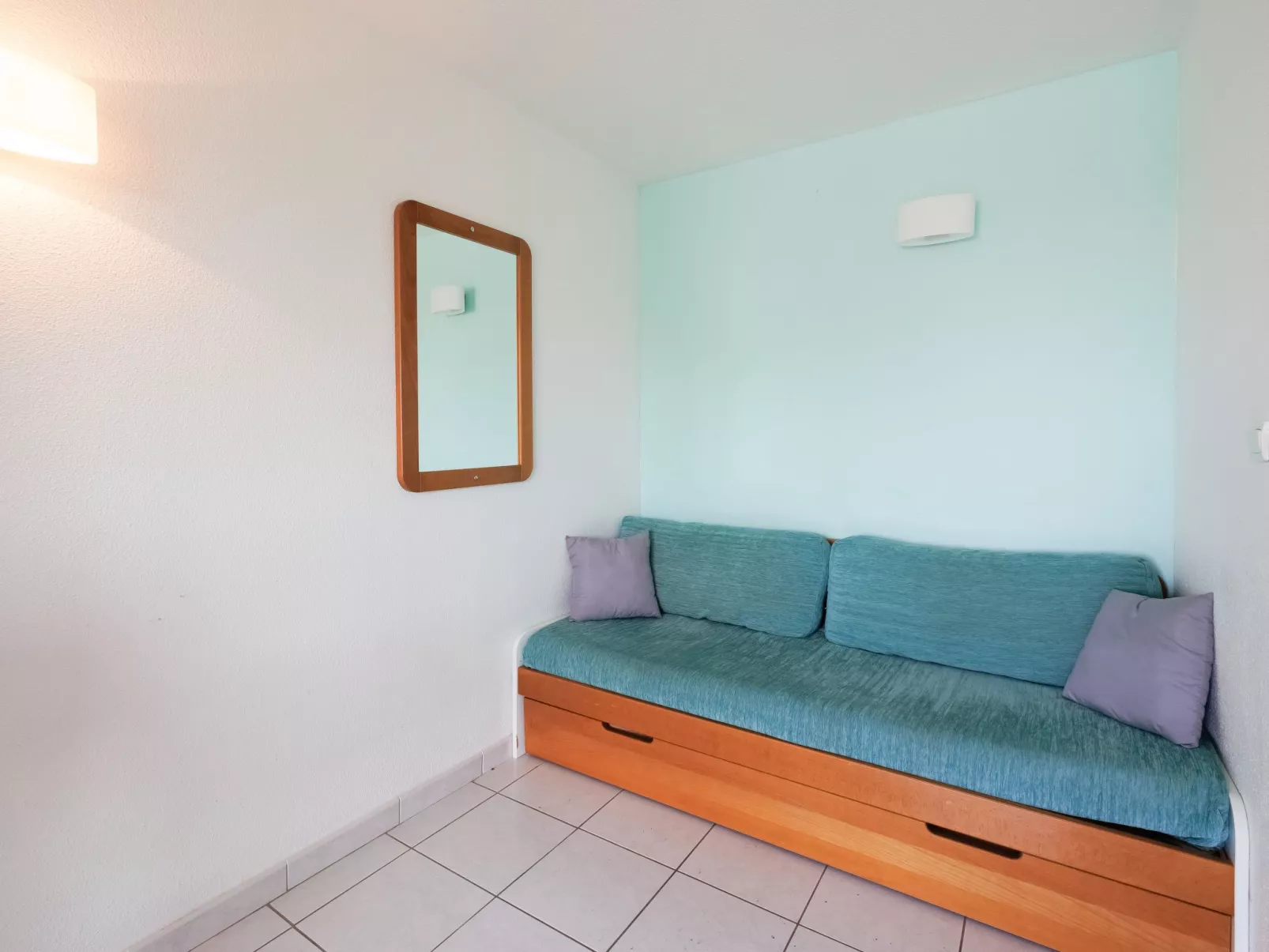 Appartement 2-kamers 23 m2 op de 1e verdieping. Woon-/eetkamer met 1 uitschuifbaar bed (2 pers. 2 x 90 cm, lengte 190 cm), TV (Flatscreen TV). 1 kamer met 2 bedden (90 cm, lengte 190 cm). Kookhoek (2 keramische glas kookplaten, magnetron). Douche/WC. Elektrische verwarming. Terras 8 m2, op het noorden gelegen en op het oosten gelegen. Terrasmeubelen. Ter beschikking: Internet (WiFi, extra). Parkeerplaats nr. 25 (omheind). Maximaal 1 huisdier/hond toegestaan. Rookmelders.