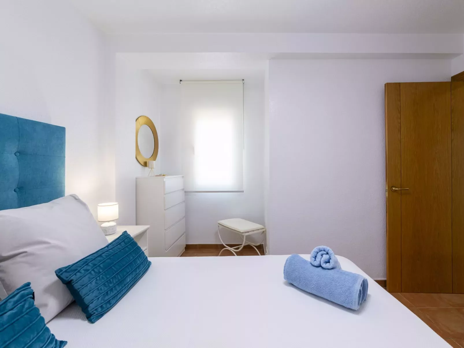"Pueblo Marino", appartement 3-kamers 60 m2 op de 1e verdieping. Doelmatig en comfortabel ingericht: woon-/eetkamer met eettafel, Digitale TV, Flatscreen TV, air-conditioning, ventilator en heteluchtverwarming. 1 kamer met 1 2-pers bed (135 cm, lengte 190 cm), ventilator. 1 kamer met 1 uitschuifbaar bed (2 x 90 cm, lengte 190 cm), ventilator. Keuken (oven, afwasmachine, 4 keramische glas kookplaten, broodrooster, waterkoker, magnetron, diepvriezer, grill, elektrische koffiemachine, pads voor de koffiemachine (Dolce Gusto) extra) met doorgeefluik. Bad/bidet/WC. Verwarming niet in alle ruimtes. Ter beschikking: wasmachine, strijkijzer, haardroger. Internet (WiFi, gratis). Parkeerplaats (overdekt, omheind) bij het huis. Niet rokers woning. CTC-2024159988 // Reg. Nr.: ESFCTU00000402300138449400000000000000CTC-20241599885