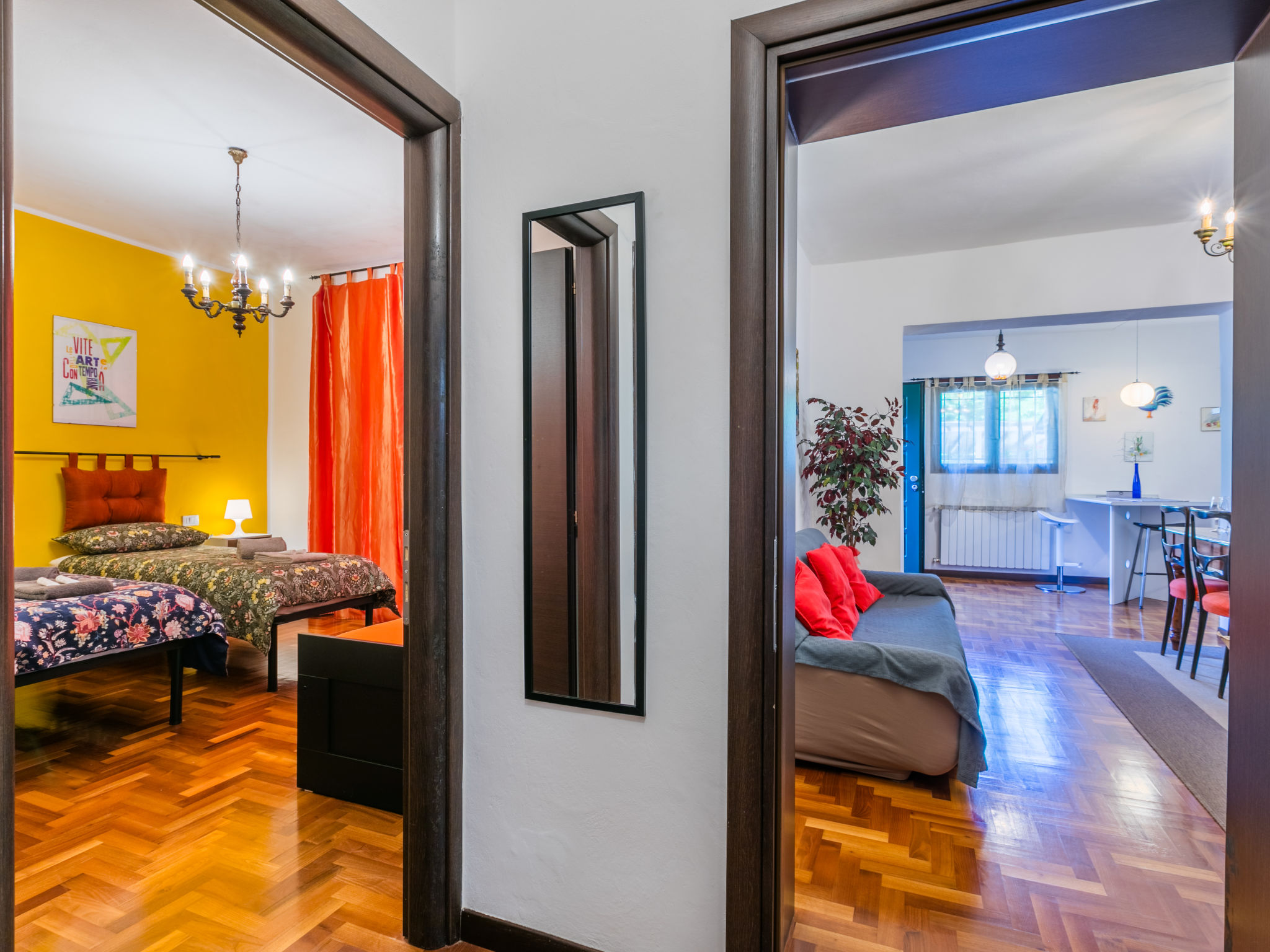 "Quiet place", appartement 3-kamers 80 m2, op de begane grond. Ruim, volledig gerenoveerd, doelmatig en modern ingericht: open woon-/eetkamer met eettafel en air-conditioning. 1 2-pers. kamer met air-conditioning. 1 kamer met 3 bedden (80 cm), air-conditioning. Open keuken (Gasfornuis, 4 kookpitten (vlammen), broodrooster, waterkoker, elektrische koffiemachine). Douche/bidet/WC. Verwarming, air-conditioning. Parketvloeren. Zithoek in de tuin. Terrasmeubelen, barbecue. Ter beschikking: klamboe, kinderstoel, kinderbed tot 2 jaar, haardroger. Internet(WiFi), gratis). Parkeerplaats bij het huis. Niet rokers woning. Privé ingang, rookmelders, brandblusser. IT048021C2Q2BAYLDJ
