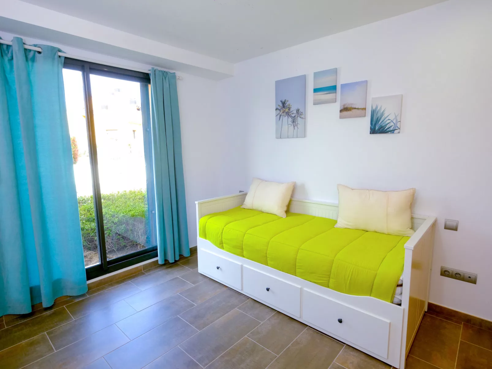 Appartement 3-kamers 131 m2, op de begane grond. Doelmatig en comfortabel ingericht: woon-/eetkamer 25 m2 met schuifdeur gordijn met eettafel, Sat-TV, air-conditioning en heteluchtverwarming. Uitgang naar de zitplaats in de tuin. 1 kamer met schuifdeur met 1 2-pers bed (150 cm, lengte 190 cm). Uitgang naar de tuin. 1 kamer met 1 uitschuifbaar bed (2 pers. 2 x 90 cm, lengte 190 cm). Uitgang naar de tuin. Open keuken (oven, 3 keramische glas kookplaten, broodrooster, waterkoker, magnetron, elektrische koffiemachine) met bar. Bad/bidet/WC, douche/bidet/WC. Zithoek in de tuin. Terrasmeubelen. Mooi uitzicht op het zwembad, de tuin en Golfbaan. Ter beschikking: wasmachine, strijkijzer, kinderstoel, kinderbed tot 2 jaar, haardroger. Internet (WiFi, gratis). Parkeerplaats (1 Auto) bij het huis. Geen lift. HUTT061956 // Reg. Nr.: ESFCTU00004303200016910900000000000000HUTT-061956-499