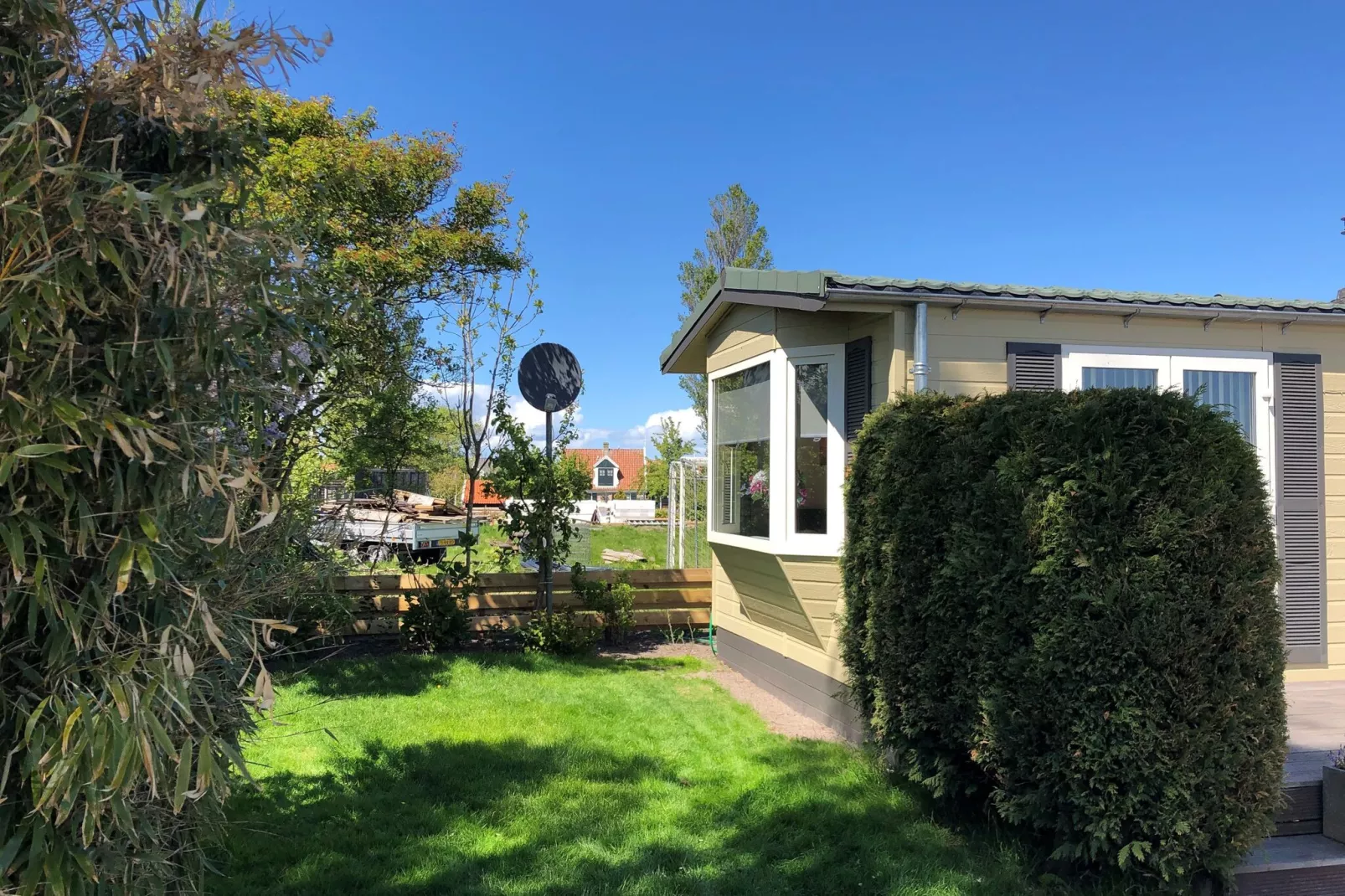 Stap naar buiten in uw eigen omheinde tuin en geniet van een kopje koffie in de ochtend of een diner in de buitenlucht aan de picknicktafel onder de overdekte overkapping. Het privéterras en extra tuinmeubilair bieden ruimte om te ontspannen, terwijl een handige schuur en parkeergelegenheid op het terrein extra comfort bieden. Of u nu een gezinsvakantie of een uitje met z'n tweeën plant, dit chalet biedt een rustige uitvalsbasis om het beste van Noord-Holland te verkennen.