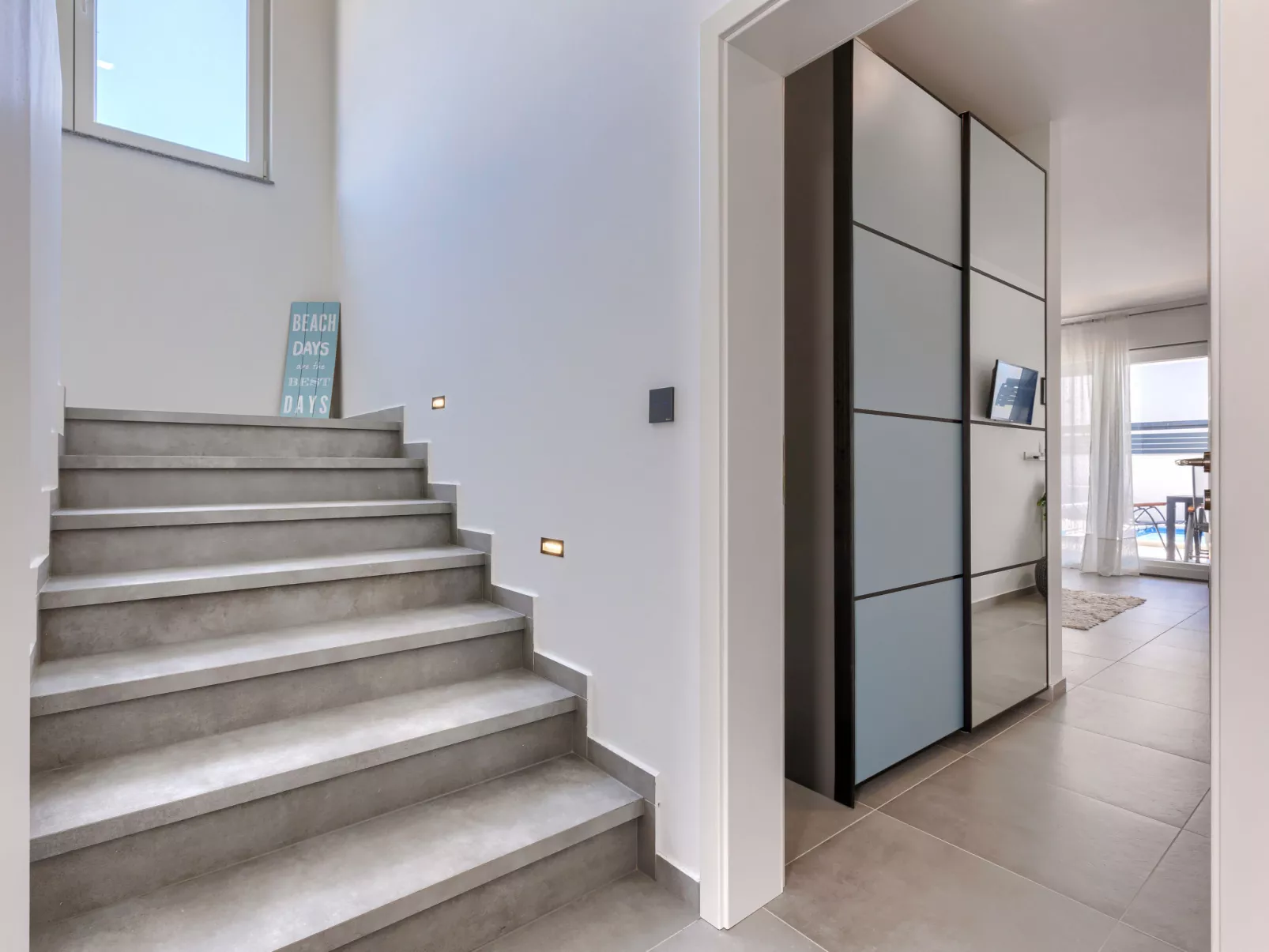 Moderne villa "Blue Rose", van 2 verdiepingen. In het gehucht Kacana, 4 km van het centrum van Vodnjan, 15 km van het centrum van Pula, zonnige ligging, 10 km van zee. Voor alleengebruik: terrein 500 m2 (omheind) met planten en bloemen, openluchtzwembad hoekig, verwarmd (8 x 4 m, 140 cm diepte, seizoensgebonden beschikbaarheid: 01.Mei. - 01.Nov.) met trap. Buitendouche, terras (30 m2), tuinmeubelen, barbecue, onderhoud zwembad door de eigenaar/tuinman. In het huis: internetaansluiting, hot tub, wasmachine. Parkeerplaats (voor 3 auto's) bij het huis op het terrein. Winkel 4 km, restaurant 4 km, bushalte 2.8 km, kiezelstrand 10 km, rotsstrand 10 km. Surfschool 13 km, zeilschool 13 km, tennis 14 km, fietspad 100 m. Attracties in de buurt: amphitheater 14 km. Openluchtzwembad verwarmd (extra.