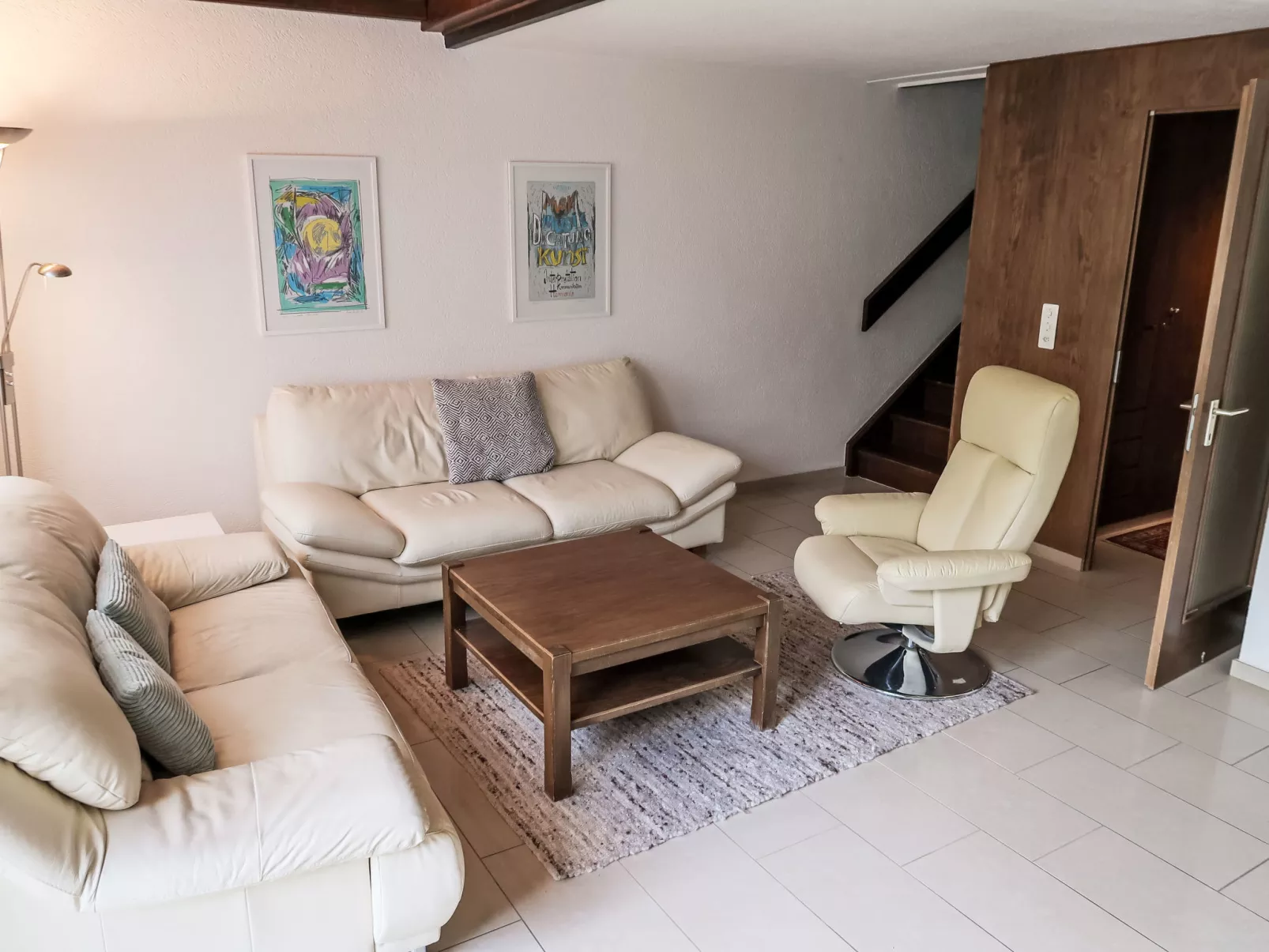 Maisonette 4-kamers 90 m2, op de bovenste verdieping. Comfortabel en gezellig ingericht: woon-/eetkamer met Kabel-TV (Flatscreen TV). Uitgang naar het balkon. Keuken (oven, afwasmachine, 4 keramische glas kookplaten, magnetron, elektrische koffiemachine, pads voor de koffiemachine (Nespresso) extra). Douche/WC. Bovenverdieping: 1 2-pers. kamer. 1 kamer met 2 bedden en 1 divanbed. 1 kamer met 1 bed. Bad/WC. Groot balkon. Balkonmeubilair. Mooi uitzicht op de bergen, het landschap en de plaats. Ter beschikking: Internet (WiFi, gratis). Niet rokers woning.