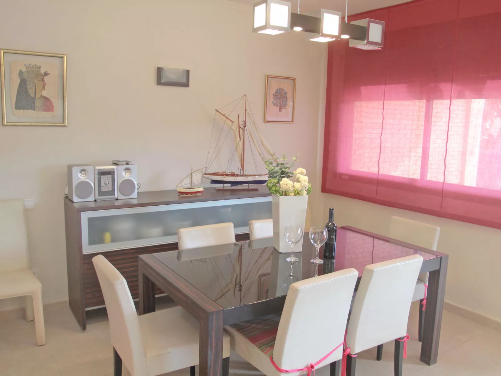 Urb Ampolla Mar: Moderne, gezellig, comfortabel huis "Rosa", van 2 verdiepingen, eenzijdig aangebouwd, bouwjaar 2006. In de plaats, 1 km van het centrum van l'Ampolla, zonnige ligging villa wijk, 200 m van zee, van het strand. Voor alleengebruik: terrein 250 m2 (omheind), openluchtzwembad hoekig (4 x 8 m, seizoensgebonden beschikbaarheid: 01.Jan. - 31.Dec.) met trap en alarminstallatie. Buitendouche, patio (40 m2), prieel (21 m2), tuinmeubelen, barbecue. In het huis: Internet (WiFi), air-conditioning, alarmsysteem, wasmachine. Parkeerplaats (voor 2 auto's, beperkt aantal) op het terrein, openbare parkeerplaatsen in de straat. Supermarkt 1 km, restaurant 350 m, bushalte "L'Ampolla" 1 km, treinstation "l'Ampolla" 1.5 km. Jachthaven 1 km, jachthaven 1 km, wandelroutes 3 km vanaf het huis. Attracties in de buurt: Parque natural Delta del Ebro 5 km, Portaventura 65 km, Pitch & putt 2 km.