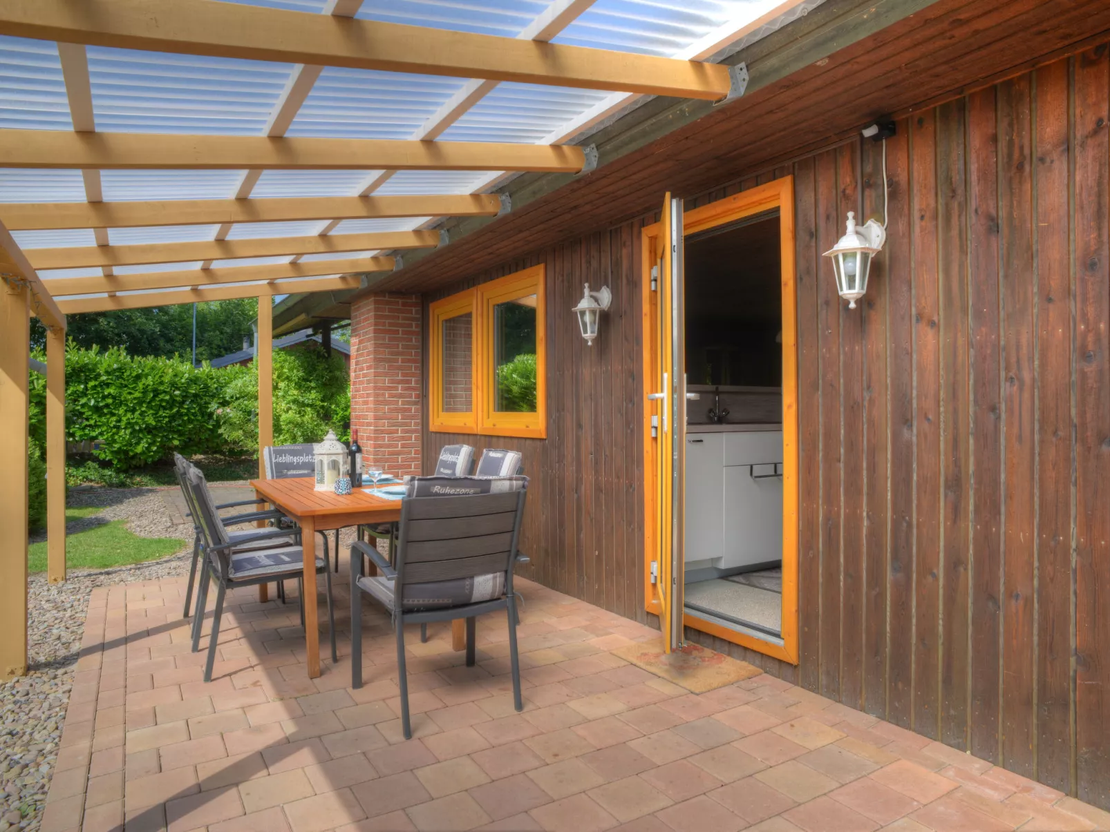 Rott 7 km van Bösingfeld: Vakantiedorp "Ferienpark Extertal". Buiten de plaats, rustige, zonnige ligging, direct aan de bosrand. Trappenweg (7 treden) naar het huis. Winkel 7 km, levensmiddelenwinkel 7 km, supermarkt 7 km, restaurant 7 km, bushalte 200 m, treinstation "Rinteln" 11 km, openluchtzwembad 10 km, overdekt zwembad 10 km. Golfterrein (18 holes) 19 km, manege 15 km. Bekende meren kunnen gemakkelijk worden bereikt: Doktorsee 12 km. Auto noodzakelijk. Wandel- en fietspaden vanaf het vakantiepark. De Doktorsee (meer) 12 km. Het vakantiepark ligt aan de rand van een beschermd natuurgebied. Voor medegebruik: midgetgolfbaan (extra). De in Skandinavisch landelijke stijl gebouwde houten vakantiehuizen zijn allemaal individueel naar smaak van de huiseigenaar ingericht.