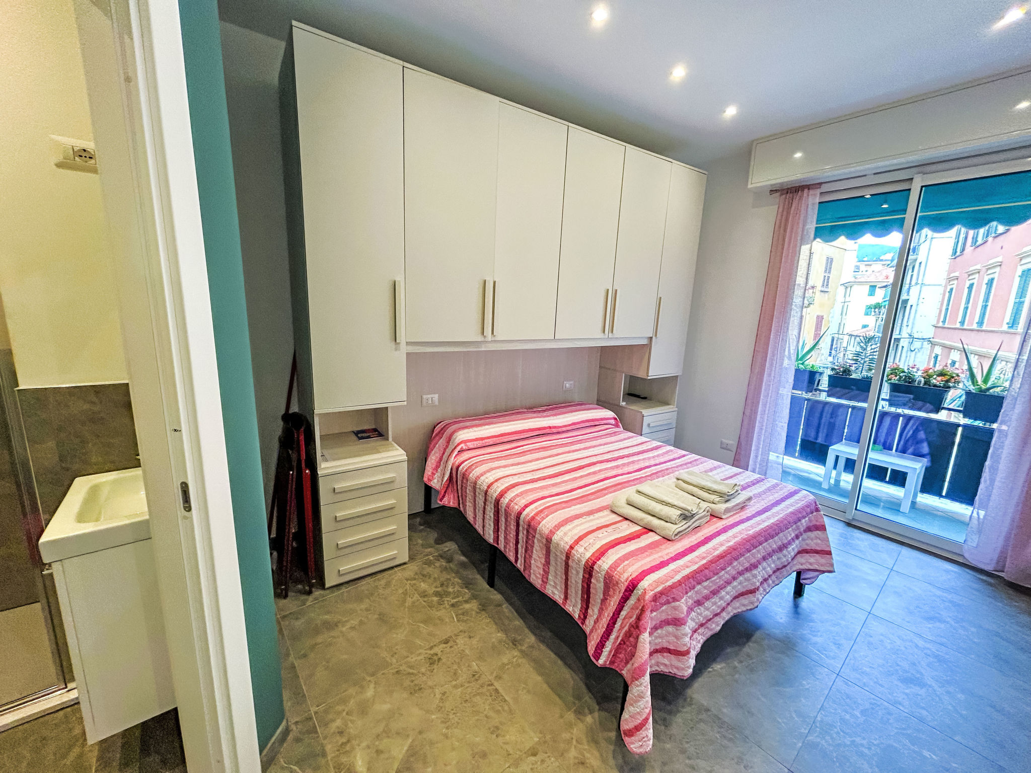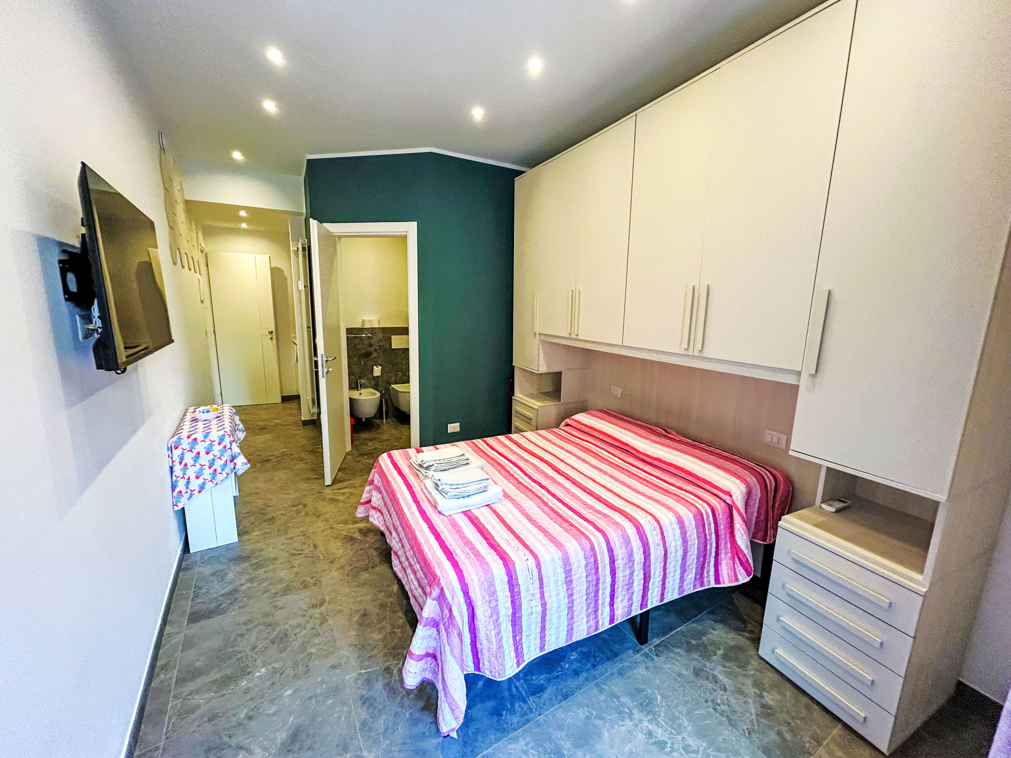 "Rosso", studio 1-kamer 22 m2 op de 2e verdieping. Volledig gerenoveerd in 2023, doelmatig en modern ingericht: woon-/slaapkamer met 1 2-pers bed (140 cm, lengte 190 cm), TV en elektrische rolluiken. Kleine kookhoek (2 inductiekookplaten, waterkoker, magnetron, elektrische koffiemachine). Douche/bidet/WC. Air-conditioning, heteluchtverwarming. Klein balkon. Ter beschikking: haardroger. Internet (WiFi, gratis). Koelkast zonder vriesvak. Rookmelders. IT010046C2USSHRFCZ