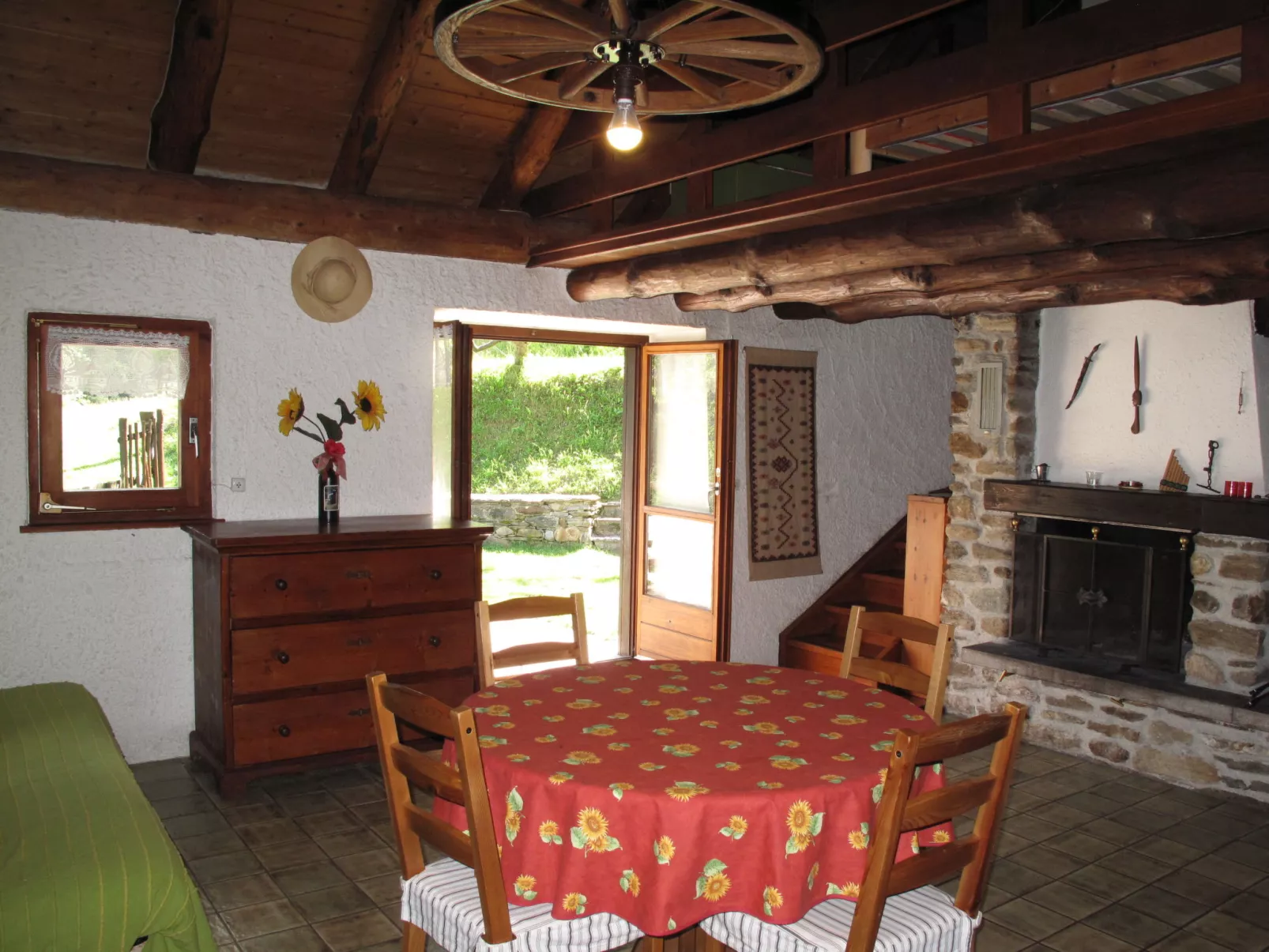 "Rustico Girasole", 1-kamer cottage 55 m2 op 3 verdiepingen, op het zuidoosten gelegen. Eenvoudig en rustiek ingericht: open woon-/eetkamer met 1 divanbed, open haard, Sat-TV, radio en gaskachel. Uitgang naar het terras. Open keuken (4-pits kookplaat, oven, Gasfornuis) met houtkachel. Souterrain: douche/WC. Houtverwarming. Solarstroom. Bovenverdieping: open galerij met 2 bedden (90 cm, lengte 210 cm), 1 2-pers bed (1 x 160 cm, lengte 210 cm). Terras. Ligstoelen (3). Zeer mooi panoramazicht op de bergen en het dal. Ter beschikking: Internet (WiFi). Niet rokers woning. Maximaal 3 huisdieren/honden toegestaan. Brandblusser. In plaats van een afgesloten slaapkamer bevinden sommige slaapgedeeltes zich in een open ruimte (galerij, nis, etc.). NL-00001922