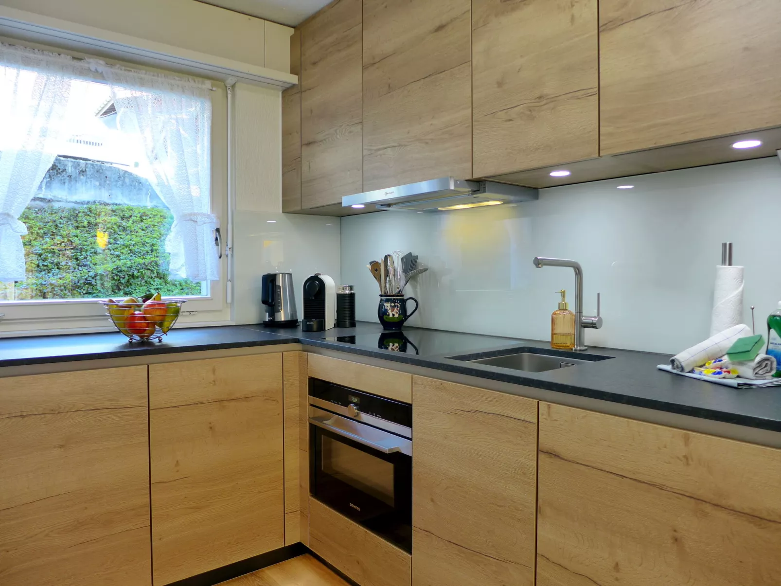 Huis in een rij 4-kamers 102 m2 op 2 verdiepingen, op het zuiden gelegen. Ruim en licht, gedeeltelijk gerenoveerd in 2024, doelmatig en gezellig ingericht: open woon-/eetkamer met panoramavenster met Kabel-TV, DVD en DVD´s beschikbaar. Uitgang naar het terras, op het zuiden. Open keuken (oven, afwasmachine, 4 inductiekookplaten, broodrooster, waterkoker, magnetron, elektrische koffiemachine, pads voor de koffiemachine (Nespresso) extra, raclette oven, fondue Set (kaas)) met eettafel. Aparte WC. Bovenverdieping: 1 groot kamer met 1 2-pers bed (2 x 90 cm, lengte 200 cm). 1 kamer met 1 bed (90 cm, lengte 200 cm). 1 kamer met 2 bedden (90 cm, lengte 200 cm). Bad/WC, dubbele wastafels. Parketvloeren, vloerbedekking. Terras 14 m2, op het zuiden gelegen. Terrasmeubelen. Mooi panoramazicht op de bergen, het landschap en het dorp. Ter beschikking: strijkijzer, kinderstoel, kinderbed tot 2 jaar (extra), haardroger. Internet (Internet (WiFi), gratis). Parkeerplaats (1 Auto) bij het huis. Geschikt voor families. Niet rokers woning. Rookmelders, brandblusser.