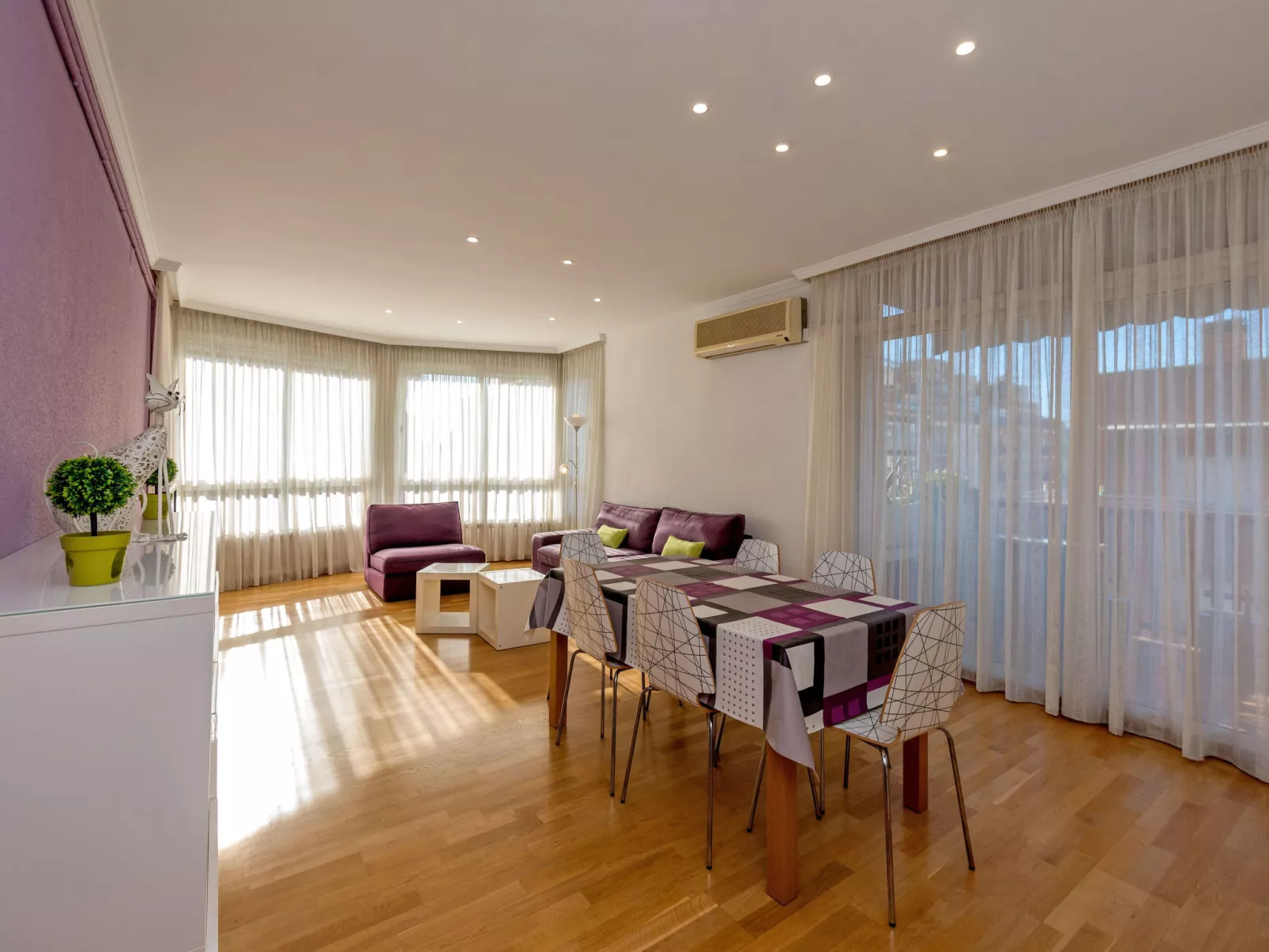 Appartement 3-kamers 110 m2 op de 5e verdieping. Licht, doelmatig en comfortabel ingericht: groot woon-/eetkamer met Digitale TV, Flatscreen TV en air-conditioning. Uitgang naar het terras. 1 kamer met 1 2-pers bed (160 cm, lengte 200 cm), air-conditioning. 1 kamer met 1 2-pers bed (140 cm, lengte 200 cm). Keuken (oven, afwasmachine, 4 keramische glas kookplaten, magnetron, diepvriezer, elektrische koffiemachine) met eettafel, TV. Uitgang naar het balkon. Douche/WC, douche/bidet/WC. Verwarming. Parketvloeren. Balkon 1 m2, terras 5 m2. Terrasmeubelen. Uitzicht op de plaats. Ter beschikking: wasmachine, strijkijzer, kinderbed tot 2 jaar (extra), haardroger. Internet (WiFi, gratis). Geschikt voor families. Rookvrij huis. HUTB007826 // Reg. Nr.: ESFCTU000008056000479911000000000000000000HUTB0078262