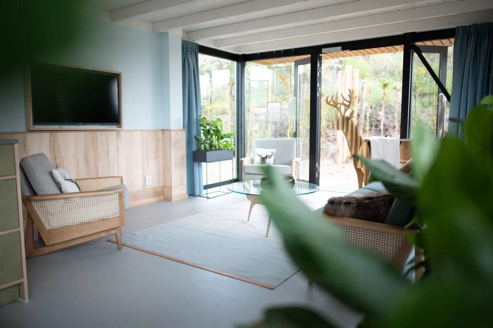 Kom weer in contact met de natuur in deze serene Sea Lodge van 110 m² in Zandvoort, waar duurzaamheid en stijl samenkomen. De lodge is geïnspireerd op de nabijgelegen Amsterdamse Waterleidingduinen en is ingericht met echt groen en handgemaakte meubels van Hout Van de Stad. Elk bed is voorzien van een QR-codepaneel waarmee je het verhaal van de boom waarvan het gemaakt is kunt volgen. Buiten kun je ontspannen in een hangmat, het insectenhotel bewonderen of vogels zien fladderen bij de voederhuisjes – perfect voor natuurliefhebbers die op zoek zijn naar een mindful escape.