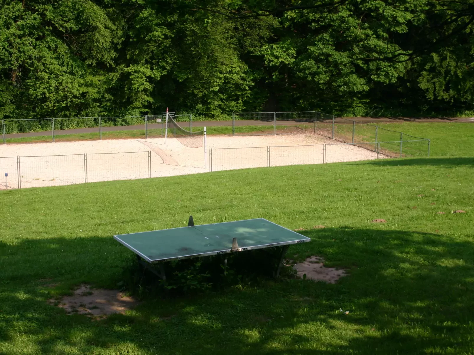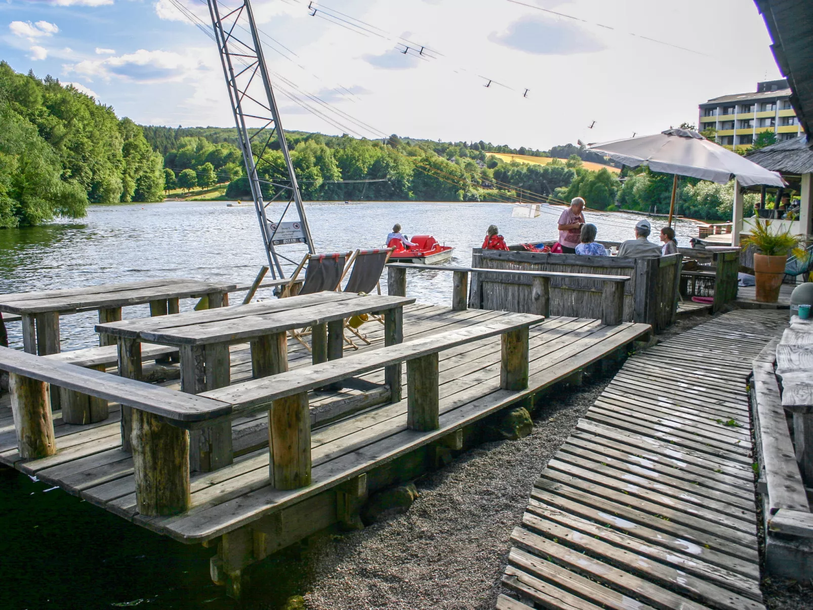 Vakantiedorp "Seepark Kirchheim". Buiten de plaats, 4 km van het centrum van Kirchheim, rustige, zonnige ligging tegen een helling, direct aan het meer, te midden van groen. Openbare parkeerplaatsen in de straat. Winkel 4 km, supermarkt 4 km, winkelcentrum 4 km, bakkerij 4 km, café 400 m, bushalte 400 m, treinstation "Bad Hersfeld" 15 km, openluchtzwembad 4 km, thermaalbad 15 km. Golfterrein (18 holes) 4 km, tennis 10 km, midgetgolf 15 km, wandelroutes 300 m vanaf het huis. Bekende meren kunnen gemakkelijk worden bereikt: Stausee 500 m. Auto noodzakelijk. De eigenaar accepteert geen jeugdgroepen. Het Seepark is opgedeeld in vier "dorpen" met in totaal 139 vakantiewoningen, die rond het meer zijn gegroepeerd (10 hectare water, zwemmen, waterskiën, zonneweide). De route rond het meer is ideaal om te wandelen en te joggen.