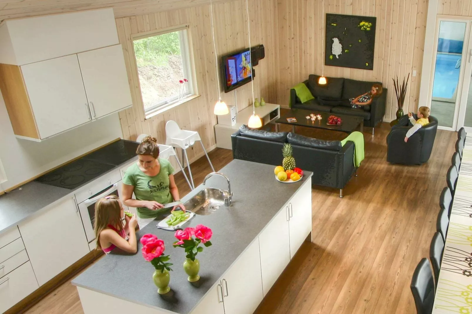 Ansprechend eingerichtetes und gut ausgestattetes Aktivitätshaus mit Swimmingpool und Aktivitätsbereich. Das Haus ist sehr geräumig und gut dimensioniert. Es gibt zwei separate Schlafbereiche mit je einem Badezimmer. Ein weiteres Bad befindet sich im Poolbereich. Alle drei Bäder sind mit Fußbodenheizung ausgestattet. Im Poolbereich des Hauses finden Sie einen großen Swimmingpool mit Wasserrutsche, einen eingebauten Whirlpool und eine Sauna mit Platz für 4-6 Personen. Nach einem erlebnisreichen Tag ist es herrlich, sich im Whirlpool oder der Sauna zu entspannen und jeglichen Alltagsstress zu vergessen. Das Wohnzimmer ist ansprechend mit modernen Möbeln, einem Holzofen und einem Flachbildfernseher eingerichtet. Gegenüber des zentral gelegenen Ess-/Aufenthaltsbereich erwartet Sie ein Aktivitätsraum mit Bartheke und Musikanlage. Außerdem können Sie hier Dart, Poolbillard, Tischtennis und Tischfußball spielen. PlayStation2 und 4 sind ebenfalls im Haus vorhanden (ohne Spiele). Kinder können draußen schaukeln und im Sandkasten buddeln, während Sie schöne Sonnenstunden oder gemütliche Grillabende auf der großen, offenen Sonnenterrasse verbringen. Im Voraus bestellte Bettwäsche, Kinderbetten und -stühle müssen im Servicebüro vor Ort abgeholt werden. Keine Vermietung an Jugendgruppen erwünscht!