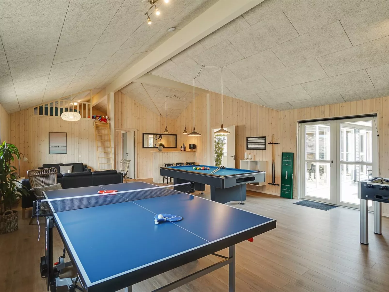 Eengezinswoning, bouwjaar 2019. 350 m van zee. Voor alleengebruik: wild terrein 2.136 m2, overdekt zwembad. Hot tub, barbecue, kinderspeelplaats (glijbaan, schommel). In het huis: sauna, tafelvoetbal, trampoline, wasmachine, droger. Parkeerplaats bij het huis. Oplaadstation. Levensmiddelenwinkel 1 km. Golfterrein 7 km. De eigenaar accepteert geen jeugdgroepen.