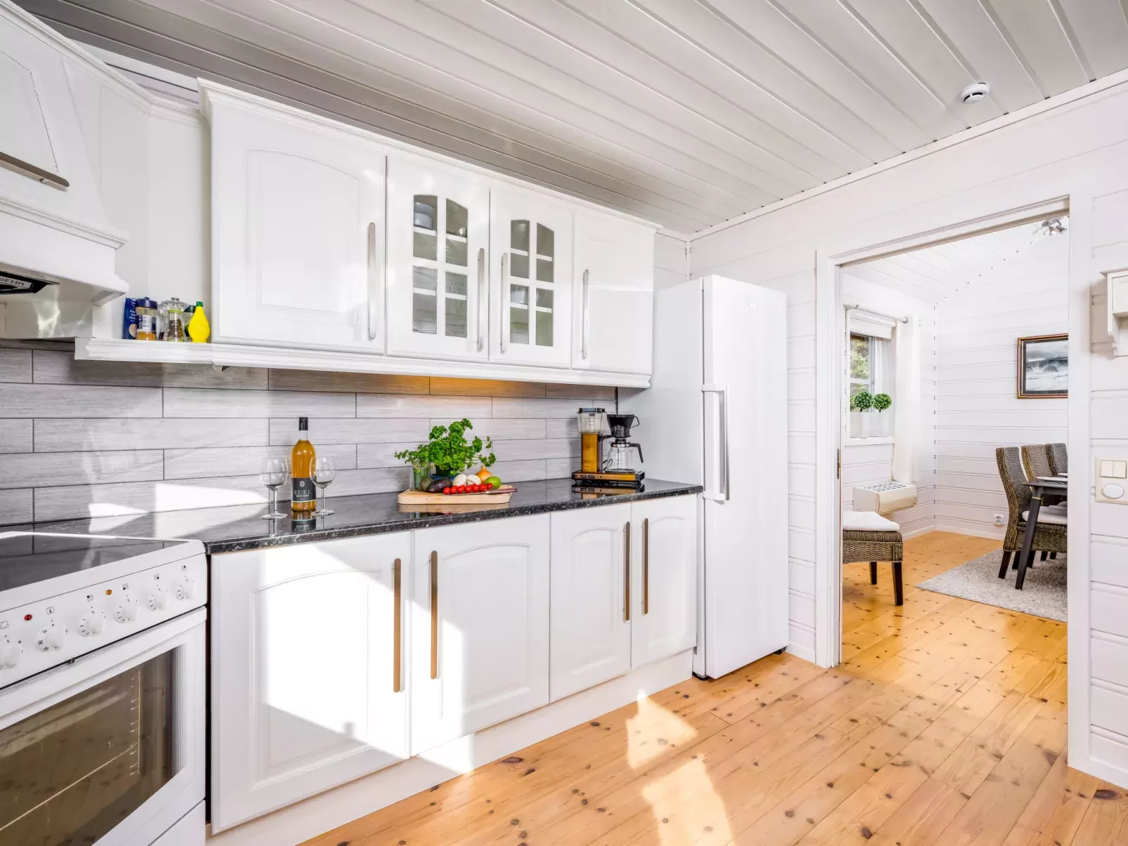 "Sjøbuvågen", huis 5-kamers 110 m2 op 2 verdiepingen. Licht, smaakvol en gezellig ingericht: woon-/eetkamer met zwedenkachel, eettafel, Sat-TV en internationale TV-zenders. Uitgang naar het terras. 2 kamers, elke kamer heeft 1 2-pers bed (150 cm, lengte 200 cm). 1 kamer met 1 bed (90 cm, lengte 200 cm). Keuken (oven, afwasmachine, 4 keramische glas kookplaten, broodrooster, waterkoker, magnetron, diepvriezer, elektrische koffiemachine). Douche/WC. Bovenverdieping: (steile trap) open galerij met afgeschuinde daken met 2 slaapplaatsen (90 cm, lengte 200 cm). Elektrische verwarming. Houten vloeren. Terras 110 m2 gedeeltelijk overdekt terras 20 m2, overdekt. Terrasmeubelen, barbecue. Uitzicht op zee. Ter beschikking: wasmachine. Rookvrij huis. Privé aanlegsteiger voor een boot. Rookmelders, brandblusser. In plaats van een afgesloten slaapkamer bevinden sommige slaapgedeeltes zich in een open ruimte (galerij, nis, etc.). 924531169