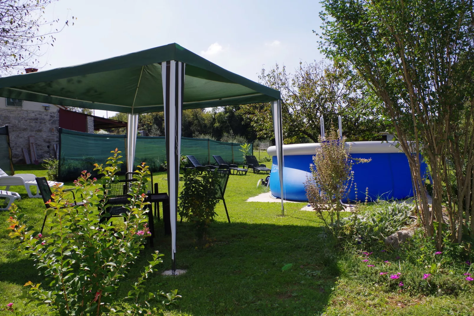 De eigenaresse, die in het huis ernaast woont, verhuurt op de 1ste en 2e etage een appartement. Je deelt het zwembad (6 x 3 m) met de andere gasten en de grote, groene tuin met meerdere terrassen en schaduwrijke plekjes bieden je voldoende privacy.