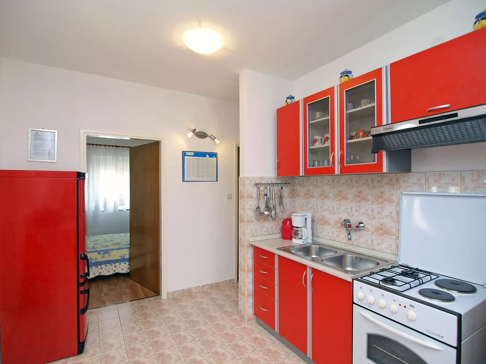 Slatine (Ciovo) 6 km van Trogir: Huis met 3 woningen "Sofija". Zonnige, verhoogde ligging, 100 m van zee, 100 m van het strand. Voor medegebruik: terrein 250 m2, tuin. Barbecue. In het huis: internetaansluiting. Overdekte parkeerplaats bij het huis op het terrein. Winkel 550 m, restaurant 350 m, bushalte 120 m, stenenstrand, rotsstrand 100 m.
