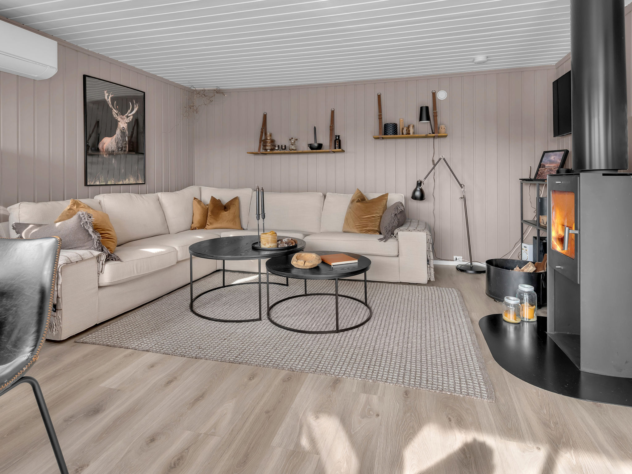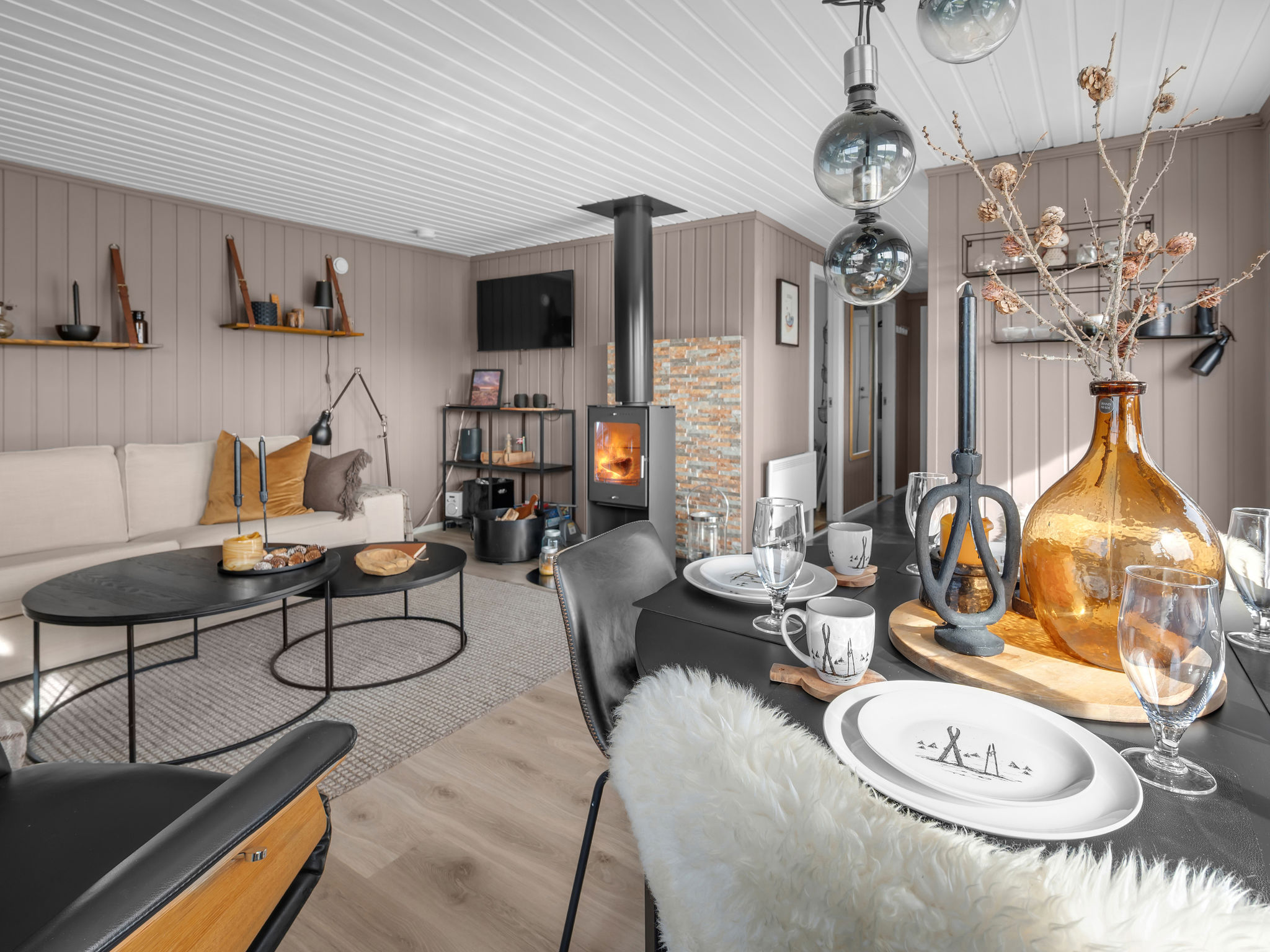 "Solbu", huis 3-kamers 52 m2. Smaakvol en gezellig ingericht: open woon-/eetkamer met zwedenkachel, douche/WC, TV en elektrische verwarming. Uitgang naar het terras. 1 kamer met 1 2-pers bed (180 cm, lengte 200 cm). 1 kamer met 2 bedden (80 cm, lengte 200 cm). Keuken (oven, afwasmachine, 4 inductiekookplaten, broodrooster, waterkoker, diepvriezer, elektrische koffiemachine). Mooi panoramazicht op het meer en de bergen. Ter beschikking: wasmachine. Internet (WiFi, gratis). Rookvrij huis. Maximaal 1 huisdier/hond toegestaan. 924531169