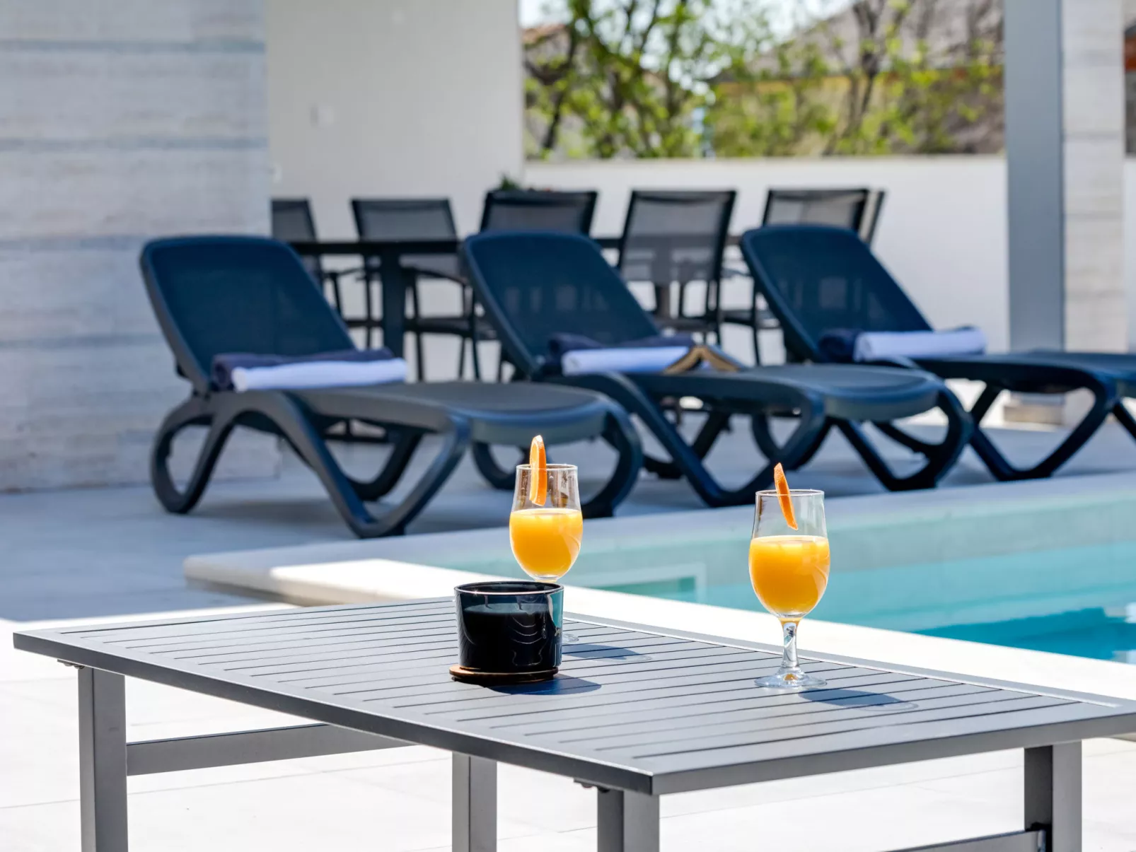 Moderne villa "Solis", van 2 verdiepingen, bouwjaar 2024. 28 km van het centrum van Zadare, zonnige, verhoogde ligging, 400 m van zee, 400 m van het strand, aan een weg. Voor alleengebruik: terrein 600 m2 (omheind), openluchtzwembad hoekig (8 x 4 m, 150 cm diepte, seizoensgebonden beschikbaarheid: 02.Mei. - 26.Sep.). Tuinmeubelen, barbecue. In het huis: internetaansluiting, wasmachine. Parkeerplaats bij het huis op het terrein. Winkel 100 m, restaurant 400 m, bushalte 900 m, kiezelstrand 500 m. Attracties in de buurt: NP Paklenica 17 km, rafting Zrmanja 35 km. Groepen jongeren uitsluitend op aanvraag.