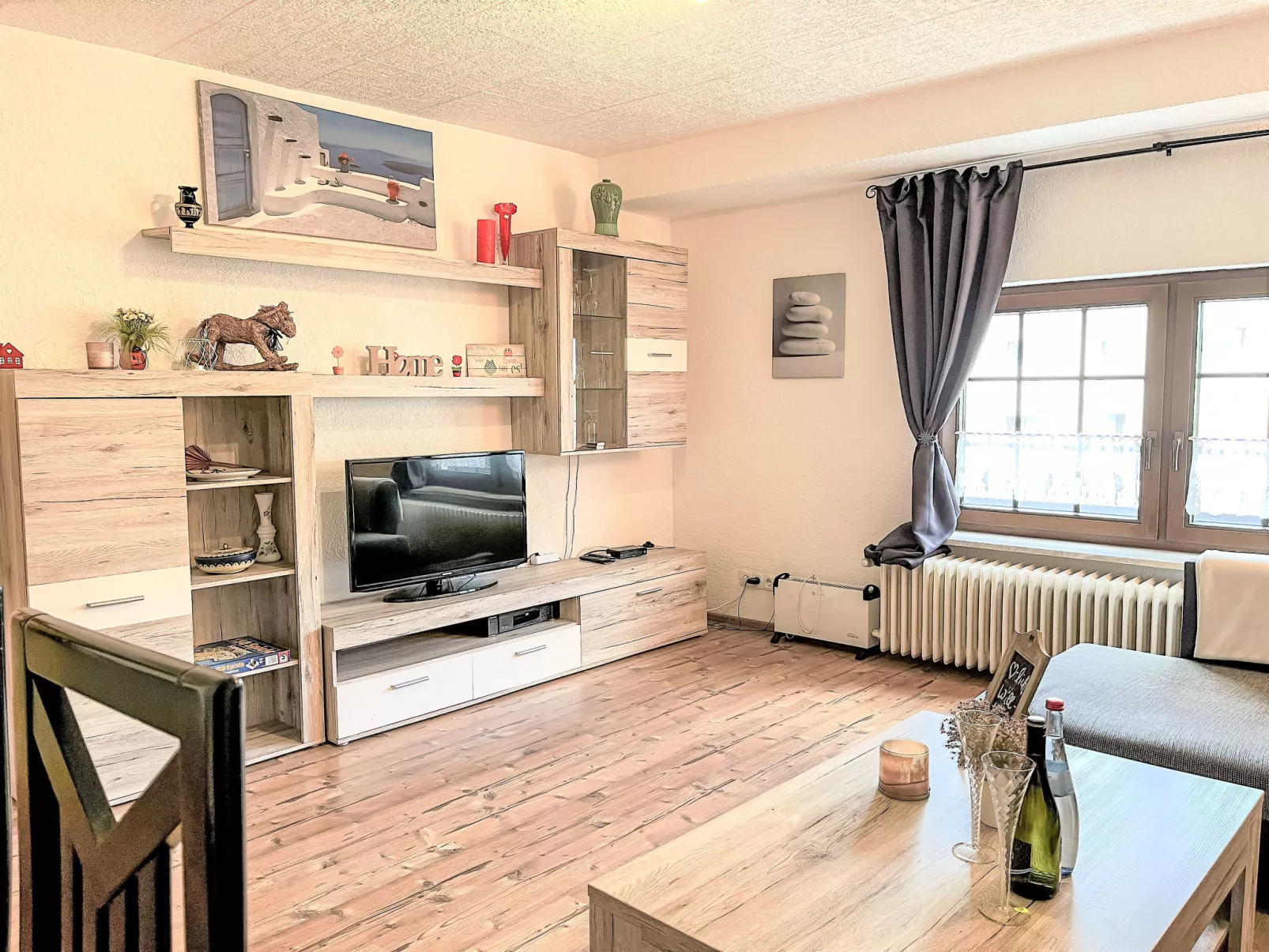 "Holiday-Home Nr 1 am Bostalsee", appartement 2-kamers 60 m2 op de 1e verdieping. Het objekt is geschikt voor 4 volwassenen. Modern ingericht: woon-/slaapkamer met 1 2-pers divanbed (200 cm, lengte 220 cm), eettafel en TV (Flatscreen TV). 1 kamer met 1 2-pers bed. Keuken (4-pits kookplaat, oven, afwasmachine, broodrooster, waterkoker, magnetron, elektrische koffiemachine) met eettafel. Douche/WC. Olie-verwarming. Ter beschikking: kinderstoel, kinderbed. Internet (Internet (WiFi), gratis). Parkeerplaats bij het huis. Niet rokers woning. Maximaal 1 huisdier/hond toegestaan. Privé ingang, rookmelders, brandblusser.