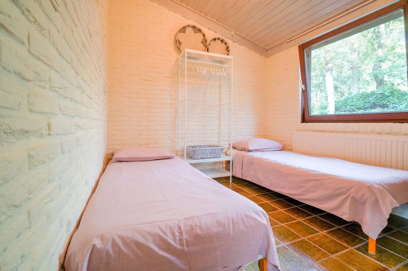 Deze vrijstaande bungalow is voor 4 personen en ligt op een ruim bosperceel van 2400 m². De woonkamer is voorzien van een knusse zithoek met een open haard. De 2 slaapkamers beschikken over 1 2-persoonsbed en 2 1-persoonsbedden. In de studeerkamer kan je eventueel het kinderbedje plaatsen.