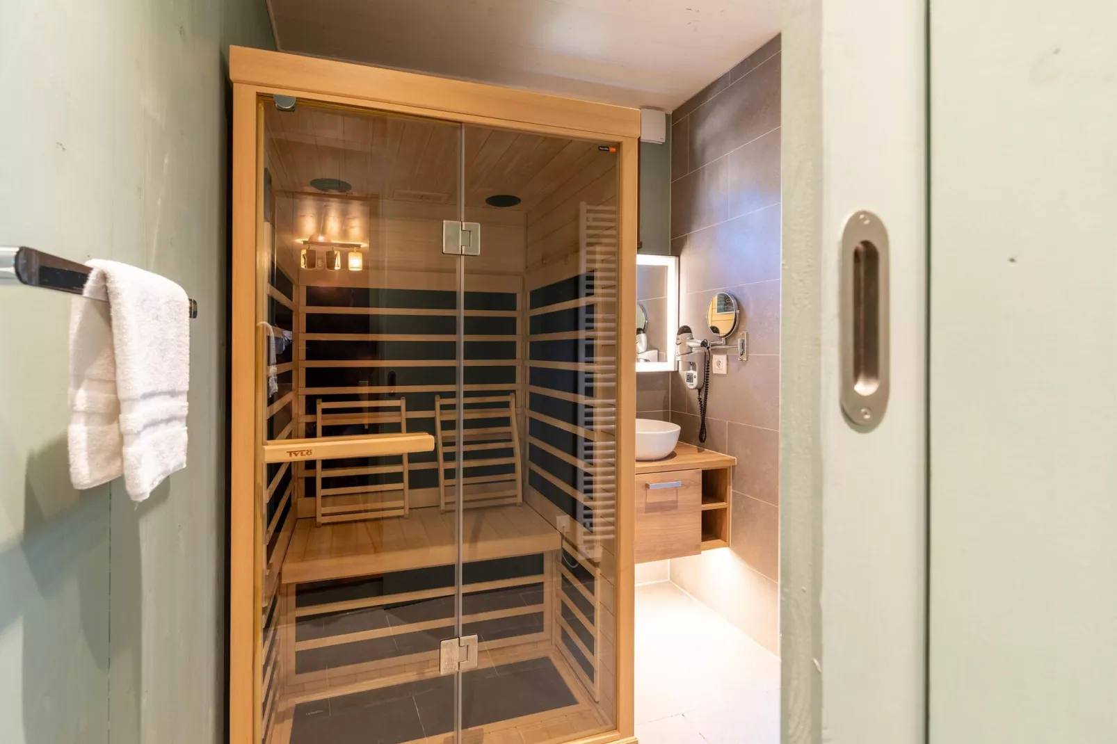 Ontspan in uw privésauna na een dag vol ontdekkingen, of kom tot rust op een van de twee dakterrassen met loungebanken en een weids uitzicht. Het terras op de begane grond is ideaal om buiten te eten.