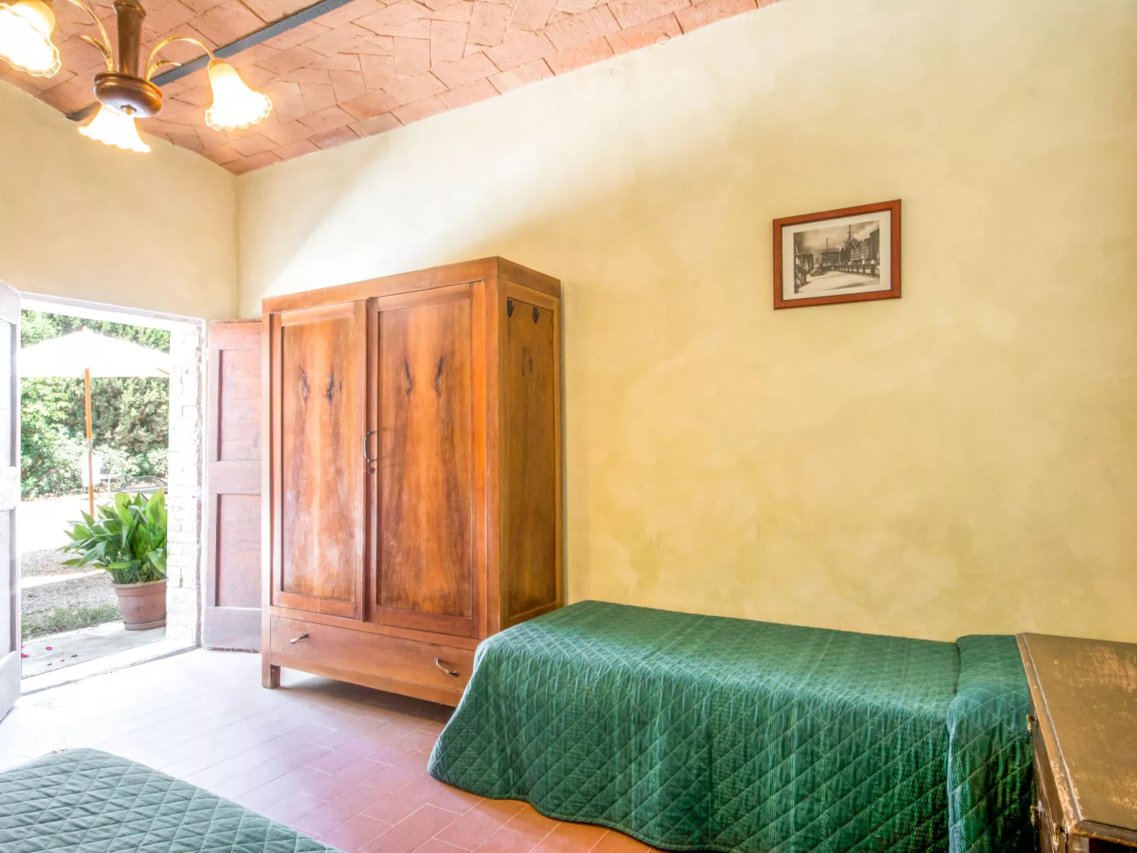 Boerderij omgeven door wijn- en olijfboomgaarden van de Chiantistreek. Elk van de 12 appartementen, gelegen in het herenhuis en in een voormalige hooischuur, beschikt over een eigen buitenruimte of over een eettafel op de terassen rondom het hoofdgebouw. Centrale ligging, ideaal om op verkenningstocht te gaan door het mooie landschap en om de culturele bezienswaardigheden van de regio te bezoeken. Boerderij "La Moraia", gerenoveerd. 14 km van het centrum van Castellina in Chianti, 18 km van het centrum van San Gimignano, 50 km van het centrum van Firenze, verhoogde ligging, te midden van groen. Voor medegebruik: tuin, openluchtzwembad (7 x 14 m, 120 - 160 cm diepte, seizoensgebonden beschikbaarheid: 09.Mei. - 26.Sep. openingstijden zwembad: 09:00-19:00). Patio, barbecue. In het huis: centrale verwarming, wasmachine (voor medegebruik, extra), Verwarming ter plaatse te betalen, verwarming alleen beschikbaar van 01.Nov. - 04.Apr.. Toegangsweg tot aan het huis (1 km onverharde weg). Parkeerplaats. Supermarkt 5 km, restaurant 5 km, bushalte 5 km, treinstation "Poggibonsi" 5 km, thermaalbad "Rapolano Terme" 55 km. Tennis 5 km. Attracties in de buurt: Monteriggioni 14 km, Barberino Val d'Elsa 16 km, San Donato 21 km, Radda in Chianti e Badia a Passignano 25 km, Siena 30 km, Volterra 38 km. De afgebeelde foto is slechts een voorbeeld. Vergelijkbare accommodaties kunnen worden geboekt.