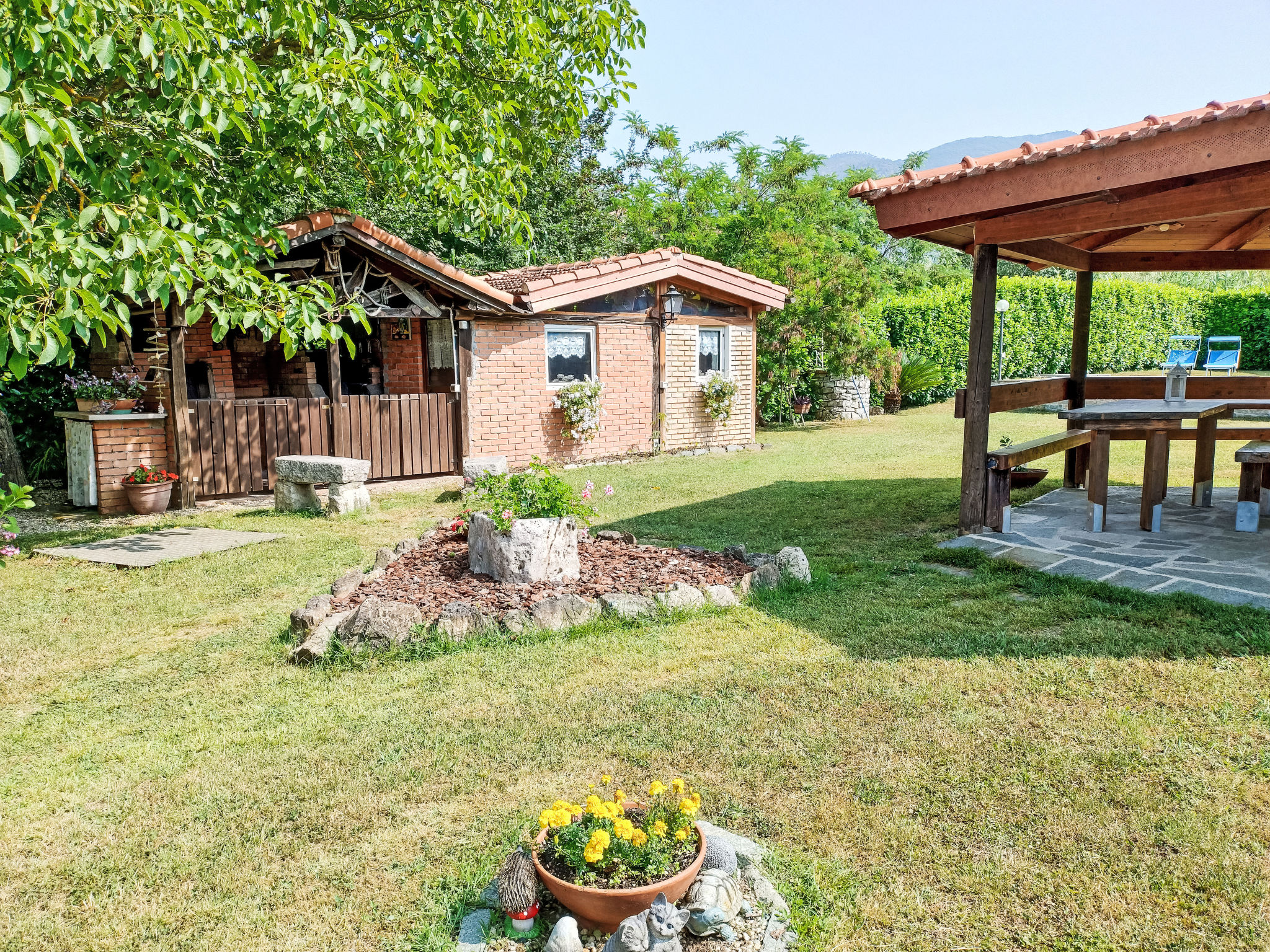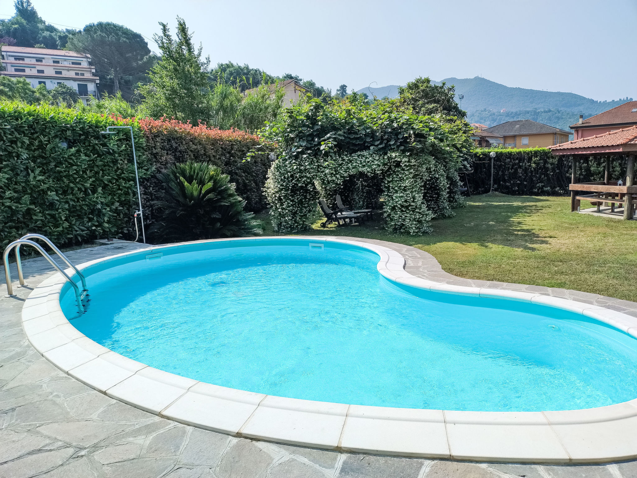 Huis met 2 woningen "Titta", van 3 verdiepingen. 600 m van het centrum van Casarza Ligure, 5 km van zee. Voor alleengebruik: verzorgde tuin 800 m2 met gazon en bomen, openluchtzwembad niervormig (7 x 4 m, 120 cm diepte, seizoensgebonden beschikbaarheid: 01.Mei. - 30.Sep.). Buitendouche, tuinmeubelen, grill, kinderspeelplaats. Supermarkt 1 km, restaurant, bar, bushalte 700 m. Attracties in de buurt: Sestri Levante 6 km, Moneglia 12 km. Auto noodzakelijk. De eigenaar woont in hetzelfde huis.
