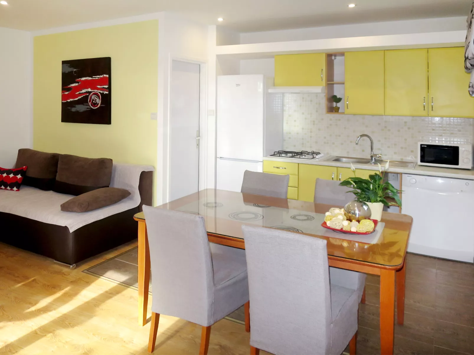 "Tome", appartement 2-kamers 40 m2, op verhoogde begane grond. Woon-/eetkamer met 1 divanbed, Sat-TV en air-conditioning. 1 kamer met 1 2-pers bed. Open keuken (afwasmachine, 2 inductiekookplaten, broodrooster, waterkoker, magnetron, diepvriezer, elektrische koffiemachine). Douche/WC. Geen verwarmingsmogelijkheid. Terras. Terrasmeubelen. Ter beschikking: Internet (Internet (WiFi), gratis). Rookvrij huis. Maximaal 1 huisdier/hond toegestaan.