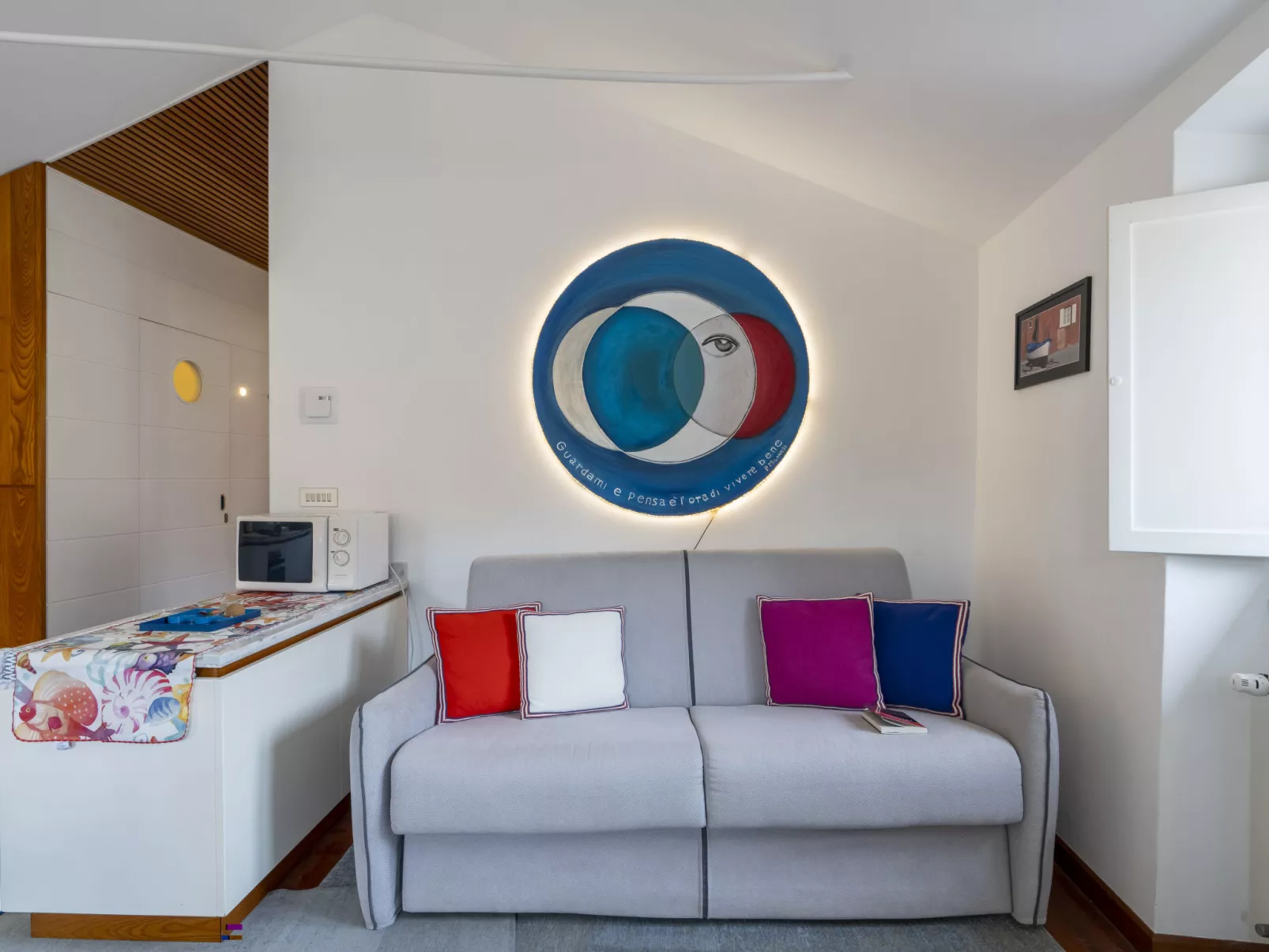 "Eclisse", dakappartement 3-kamers 70 m2 op de 3e verdieping. Licht, volledig gerenoveerd in 2020, modern en smaakvol ingericht: woon-/slaapkamer met Kleedkamer met 1 2-pers divanbed (1 x 160 cm, lengte 190 cm), eettafel en TV. 1 kamer met 1 2-pers bed (1 x 160 cm, lengte 190 cm). 1 kamer met 1 bed (80 cm, lengte 190 cm). Open keuken (oven, afwasmachine, 4 kookpitten (vlammen), broodrooster, waterkoker, magnetron, diepvriezer, elektrische koffiemachine, pads voor de koffiemachine (Nespresso)). Bad/WC. Verwarming. Verwarming alleen beschikbaar van 01.11. tot 01.04. Parketvloeren. Bergruimte. Mooi uitzicht op de plaats. Ter beschikking: wasmachine, strijkijzer, kinderstoel, kinderbed, haardroger. Garage (1 Auto) op 650 m, hoogte 220 cm, breedte 500 cm. Niet rokers woning. Geen lift. IT009042C2QCRRJ5BG