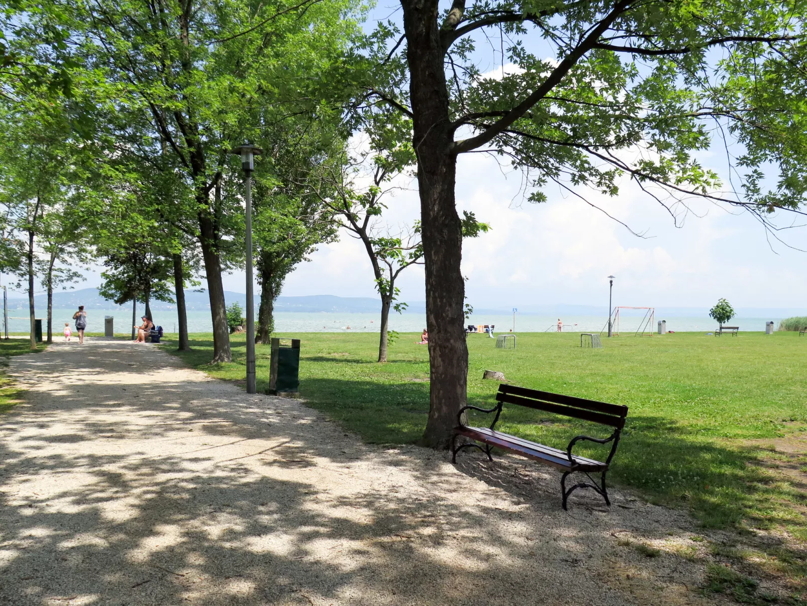 Balatonboglár: Moderne, mooi twee onder één kap woning "Twin Combo". In de plaats, 150 m van het meer. Voor alleengebruik: terrein 300 m2, verzorgde tuin (omheind) met gazon en bloemen. Patio. In het huis: Internet (WiFi), wasmachine. Levensmiddelenwinkel 150 m, restaurant 50 m, grasstrand 150 m. Spoorweg in de buurt.