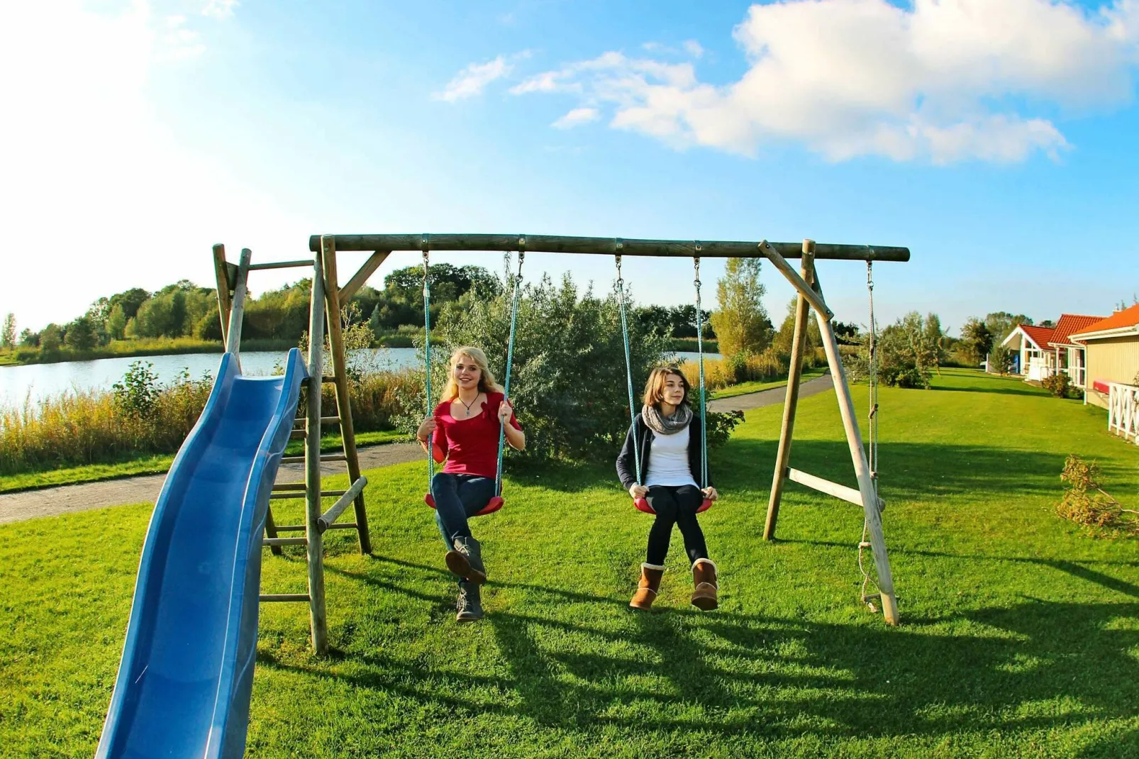 1. Reihe. Dieses qualitativ hochwertige und 2020 renovierte Ferienhaus wurde im dänischen Stil und in direkter Wasserlage im Wasser- und Landschaftspark in Otterndorf erbaut. Durch Solarenergie und Einzelraum-Heizungssteuerung ist das Haus energiefreundlich und verfügt außerdem über eine komfortable Ausstattung für einen angenehmen und erholsamen Urlaub. Der mit Wintergarten und Atelierfenster mit Plisseeanlage zur Beschattung versehene, 33 m² große Wohnraum ist mit einem gemütlichen Kaminofen, 2 kompletten Sitzgruppen und einem Esstisch für 12 Pers. ausgestattet, von dem man einen wundervollen Blick in die Wasserlandschaft hat. Hier ist genügend Platz für ein gemütliches Beisammensein vor dem Kaminofen, der an kalten Tagen für behagliche Wärme sorgt. An heißen Sommertagen sorgt eine Klimaanlage im Wohn-/Essbereich für angenehm kühle Innentemperaturen. Seit 2015: HIGHSPEED SURFEN möglich. Das Haus erscheint gepflegt und das Inventar und Einrichtungen werden fortlaufend auf gutem Stand gehalten. Angrenzend die offene, mit modernen Geräten ausgestattete Küche, u.a. finden Sie eine Mikrowelle und eine Spülmaschine. In der Küche und im Wohn- und Essbereich ist ein neuer, allergikerfreundlicher Bodenbelag vorhanden. Insgesamt gibt es 4 Schlafzimmer, alle mit einem Doppelbett, verdunkelnden Vorhängen bzw. Rollos und Radiowecker. Zwei Schlafzimmer sind mit einem Boxspringbett (seniorenfreundlich, 60 cm) ausgestattet. Im Schlafzimmer zum See gibt es einen zweiten Fernseher und im Wohnzimmer sind 2 Alkoven, die sogenannten "Schlafhöhlen", die besonders bei Kindern sehr beliebt sind. In jedem Alkoven sind jeweils 2 Einzelbetten vorhanden. Für Kinder steht sowohl ein Hochstuhl als auch ein Kinderbett zur Verfügung. Darüber hinaus gibt es 2 Badezimmer, die beide mit Duschkabine und Fußbodenheizung ausgestattet sind. Eins davon gr. Bad mit Dusche mit Glastür. Außer der entspannenden skandinavischen Sauna gibt es einen mit Therapiedüsen ausgestatteten Whirlpool, der zur Unterwassermassage einlädt. Hier können Sie sich herrlich nach einem langen Tag in der Natur entspannen. Auch Insektenschutzgitter wurden an den Fenstern angebracht. Am Haus befindet sich sowohl eine offene als auch eine überdachte Terrasse mit Sonnenliegen, die zum Sonnenbaden und zu gemütlichen Grillabenden einladen. Kinder freuen sich über einen Sandkasten und ein Spielgerüst. Den Gästen des Hauses steht außerdem auch ein Kanu für 2 Erwachsene und 2 Kinder zur freien Verfügung; bitte beachten Sie jedoch, dass die Nutzung auf eigene Verantwortung geschieht. Bei Jugendgruppen ist eine Kaution von 500,00 Euro pro Person vor Ort zu zahlen.