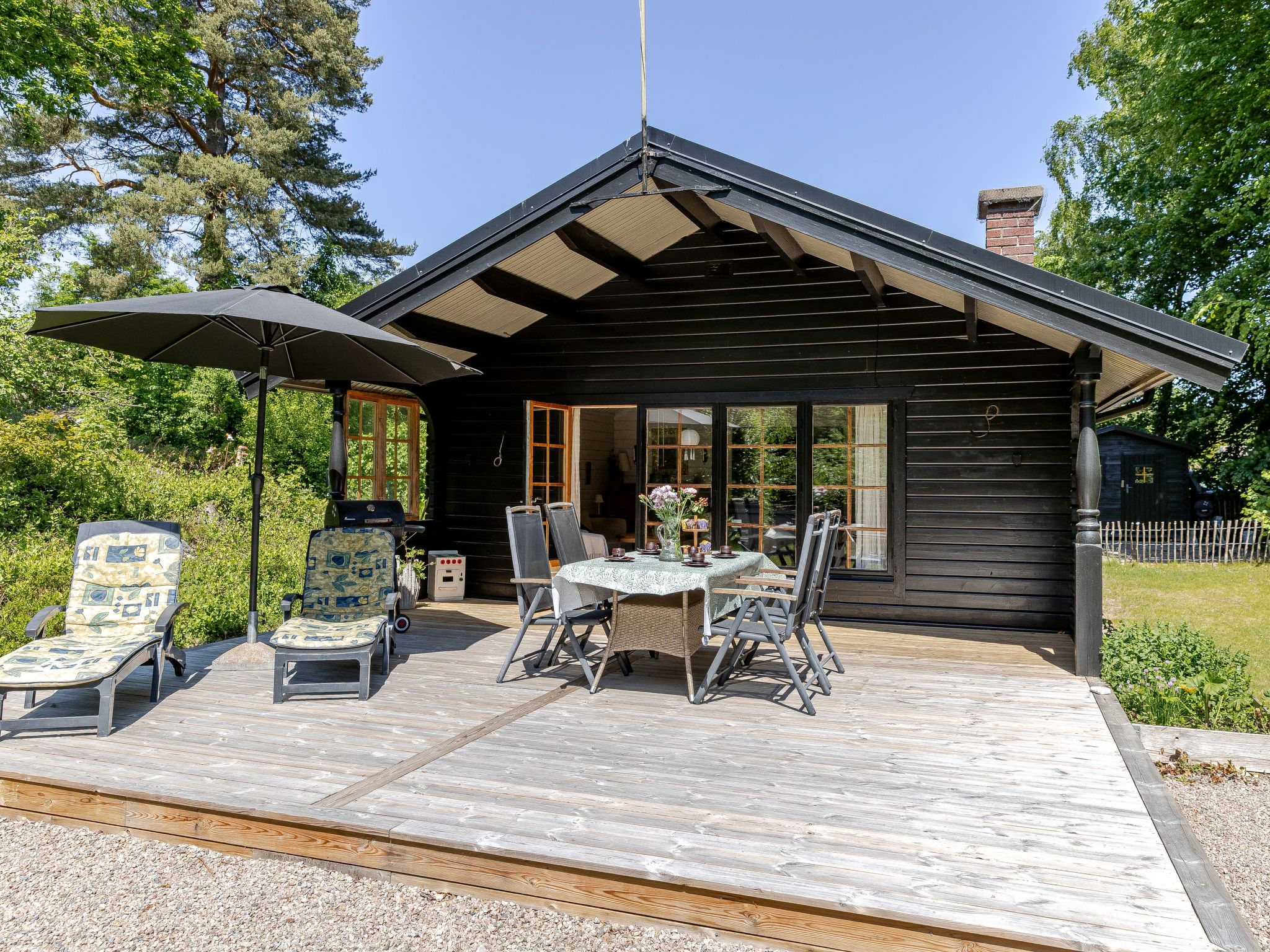 "Väbynäs", huis 4-kamers 65 m2. Woonkamer met TV. Uitgang naar de tuin, naar de veranda. 1 kamer met 1 bed. 1 kamer met 2 bedden. 1 kamer met 1 2-pers bed. 1 2-pers. kamer met 1 2-pers bed. Open keuken (afwasmachine, 4 inductiekookplaten, broodrooster, waterkoker, magnetron, diepvriezer, elektrische koffiemachine). Douche/WC. Verwarming. Houten vloeren. Terrasmeubelen, barbecue (verrijdbaar). Ter beschikking: Internet (Internet (WiFi)). Eén tweepersoonskamer is buiten het appartement. Rookvrij huis. Geen interne verbinding tussen de aparte wooneenheden.