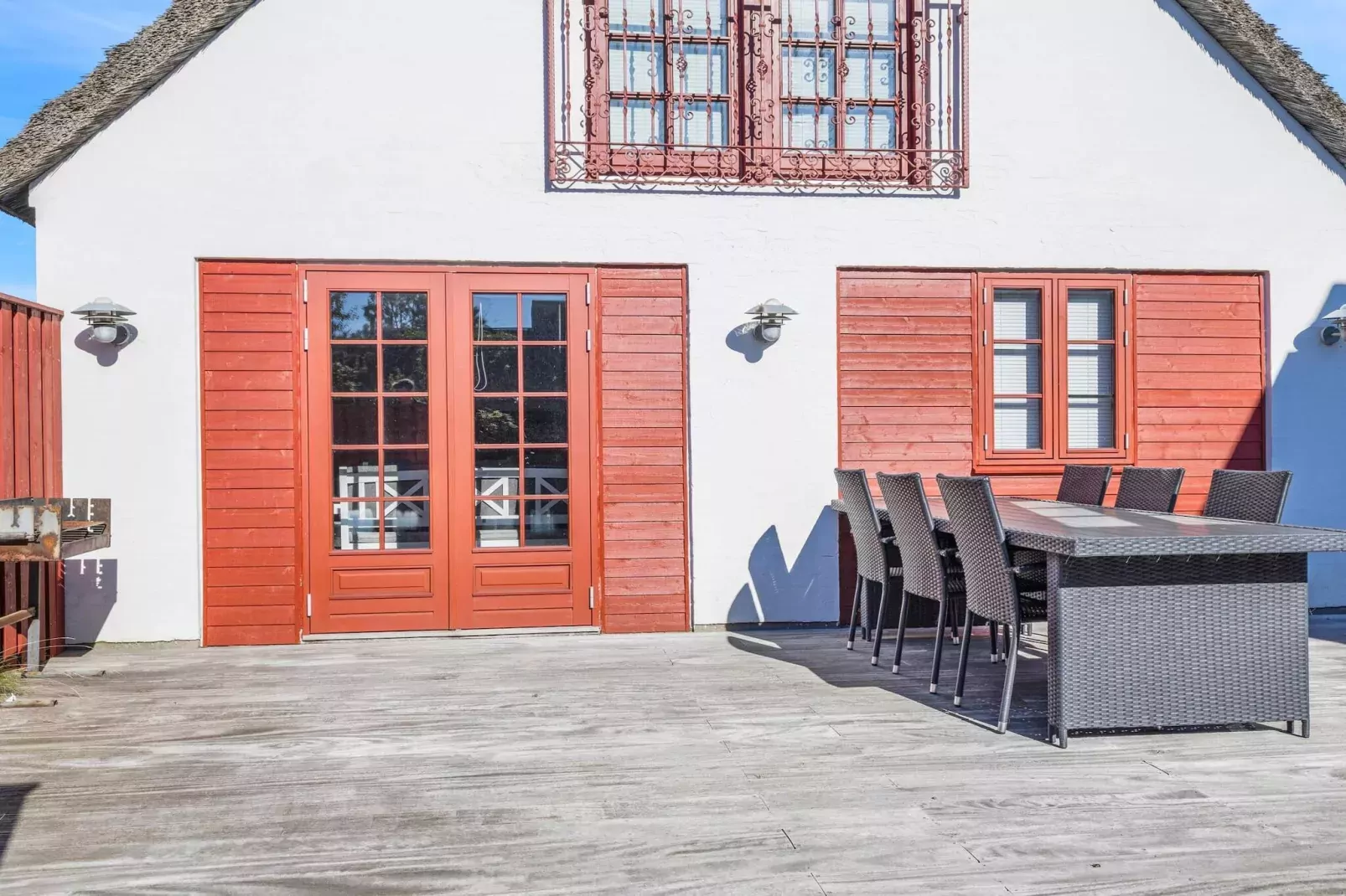 Das Møllehuset in Blokhus ist ein einzigartiges Ferienhaus, das sich über vier Gebäude erstreckt und Platz und Komfort für bis zu 16 Gäste bietet. In einer ruhigen Sackgasse gelegen, nur 1 Kilometer vom Strand entfernt, ist dieses charmante Haus ideal für mehrere Familien oder Gruppen von Freunden, die einen unvergesslichen Urlaub in Dänemark verbringen möchten. Das Haus verfügt über ein Poolhaus mit großem Pool, Sauna und Bademöglichkeiten, die einen komfortablen und entspannenden Aufenthalt garantieren. Die anderen drei Gebäude sind mit separaten Küchen, Duschen und reichlich Wohnraum ausgestattet und eignen sich daher ideal für Gruppenaufenthalte. Mit den Geschäften, Restaurants und Attraktionen von Blokhus wie dem Strand, Fun Art und dem Fårup Sommerland in der Nähe, bietet dieser Ort alles für einen aktiven oder entspannten Urlaub. Genießen Sie Wanderungen oder Radtouren auf malerischen Wegen oder besuchen Sie das nahe gelegene Løkken mit weiteren Sehenswürdigkeiten und Aktivitäten. Das Haus befindet sich auf einem 3000 Quadratmeter großen Grundstück, das viel Platz für Aktivitäten im Freien bietet. Mit einer Vielzahl von Attraktionen in der Nähe und komfortablen Wohnräumen bietet das Møllehuset den perfekten Rahmen für einen unvergesslichen Urlaub. Das 1999 wunderschön renovierte Haupthaus und das 2020/2021 modernisierte zweistöckige Haus bieten insgesamt 392 Quadratmeter Platz. Die Aufteilung des Hauses umfasst 8 Personen im ersten Haus (3 Schlafzimmer), 4 Personen im zweiten Haus (2 Schlafzimmer) und 4 Einzelbetten im Nebengebäude. Der abgelegene Außenbereich bietet geräumige Terrassen, einen großen Garten und eine friedliche Umgebung mit der Natur vor der Haustür. Das Anwesen ist ideal für große Versammlungen, da es sowohl Privatsphäre als auch Gemeinschaftsräume bietet.
