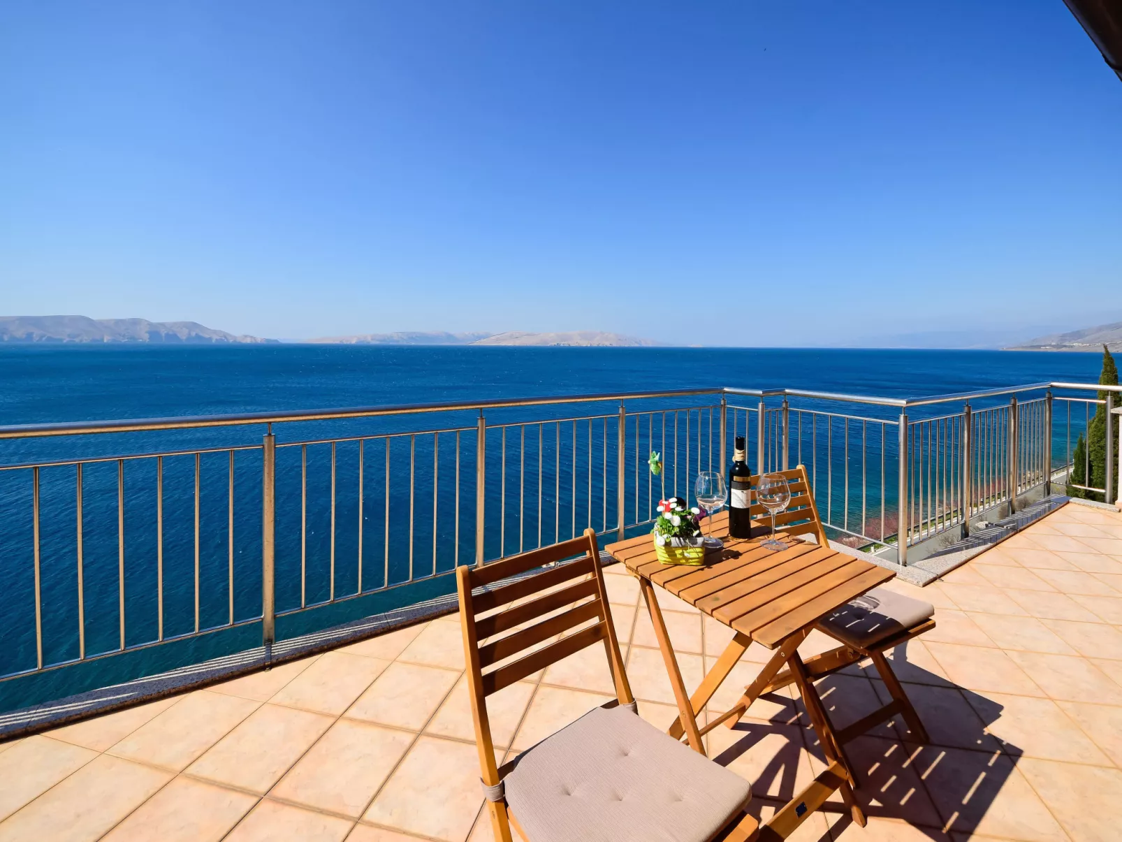 Appartement 2-kamers 51 m2 op de 2e verdieping, op het zuiden gelegen. Volledig gerenoveerd in 2018: woon-/eetkamer 20 m2 met Sat-TV (Flatscreen TV), air-conditioning. Uitgang naar het balkon. 1 kamer met afgeschuinde daken, hoogte van het plafond 185 - 350 cm met 1 2-pers bed (2 x 80 cm, lengte 200 cm). Uitgang naar het balkon. Open keuken (afwasmachine, 3 keramische glas kookplaten, magnetron, diepvriezer, elektrische koffiemachine). Douche/WC. Geen verwarmingsmogelijkheid. Balkon 15 m2, balkon 3 m2. Balkonmeubilair. Mooi uitzicht op zee. Ter beschikking: wasmachine. Internet (Internet (WiFi), gratis).