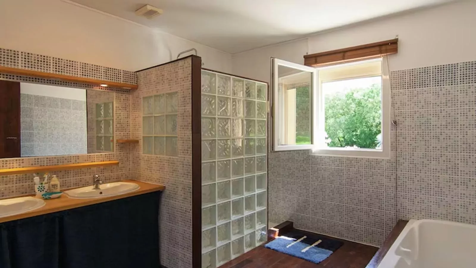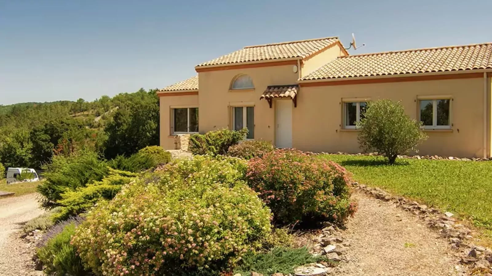 Het huis heeft 3 slaapkamers op de begane grond, en een garage in het soutterain met nog een slaapkamer die s'zomers heerlijk koel is