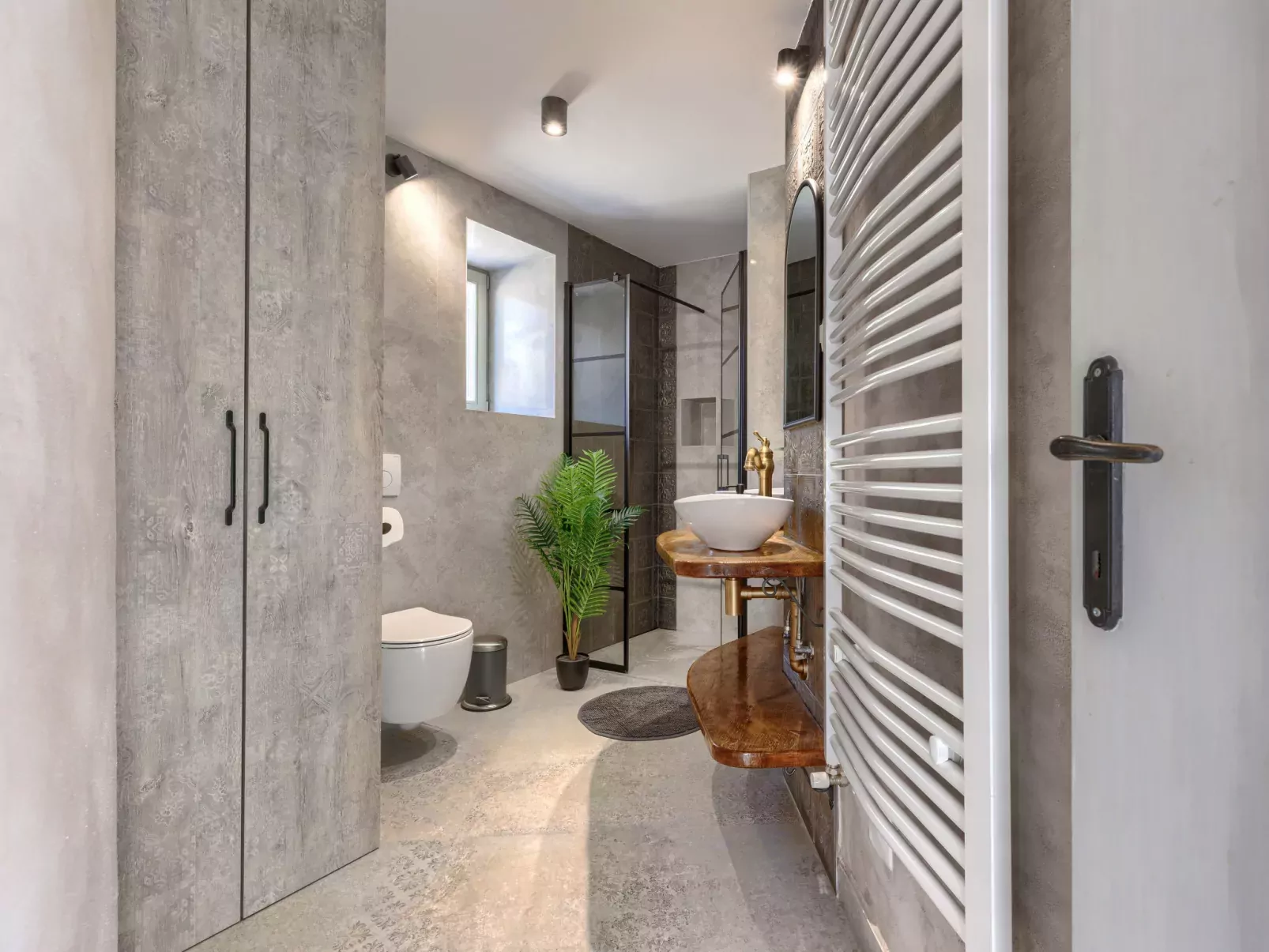 Twee onder één kap woning "Villa Domenica", van 2 verdiepingen, uit de 18e eeuw, gerenoveerd. 1.1 km van het centrum van Trget, buiten de plaats, rustige, zonnige, verhoogde ligging, 900 m van zee, 900 m van het strand, aan een doodlopende weg. Voor alleengebruik: terrein 700 m2, tuin met planten, openluchtzwembad hoekig (8 x 3 m, 140 cm diepte, seizoensgebonden beschikbaarheid: 11.Apr. - 24.Okt.) met trap. Buitendouche, terras (10 m2), tuinmeubelen, barbecue, kinderspeelplaats (schommel). In het huis: internetaansluiting, wasmachine. Parkeerplaats (voor 3 auto's) bij het huis op het terrein. Winkel 1.1 km, restaurant 600 m, bushalte 6.6 km, kiezelstrand 900 m. Beschikbaar: box voor honden (inbegrepen in de prijs).
