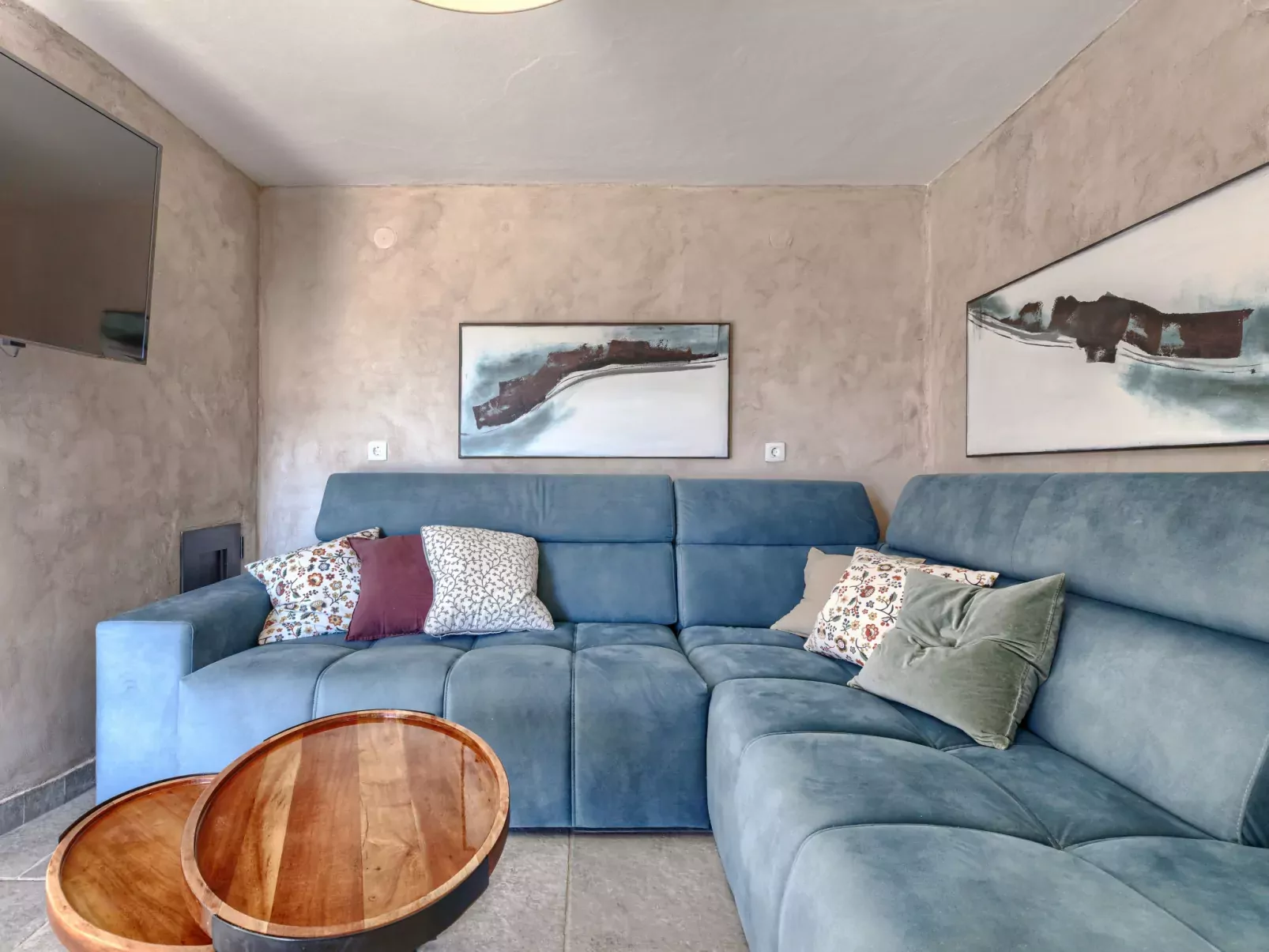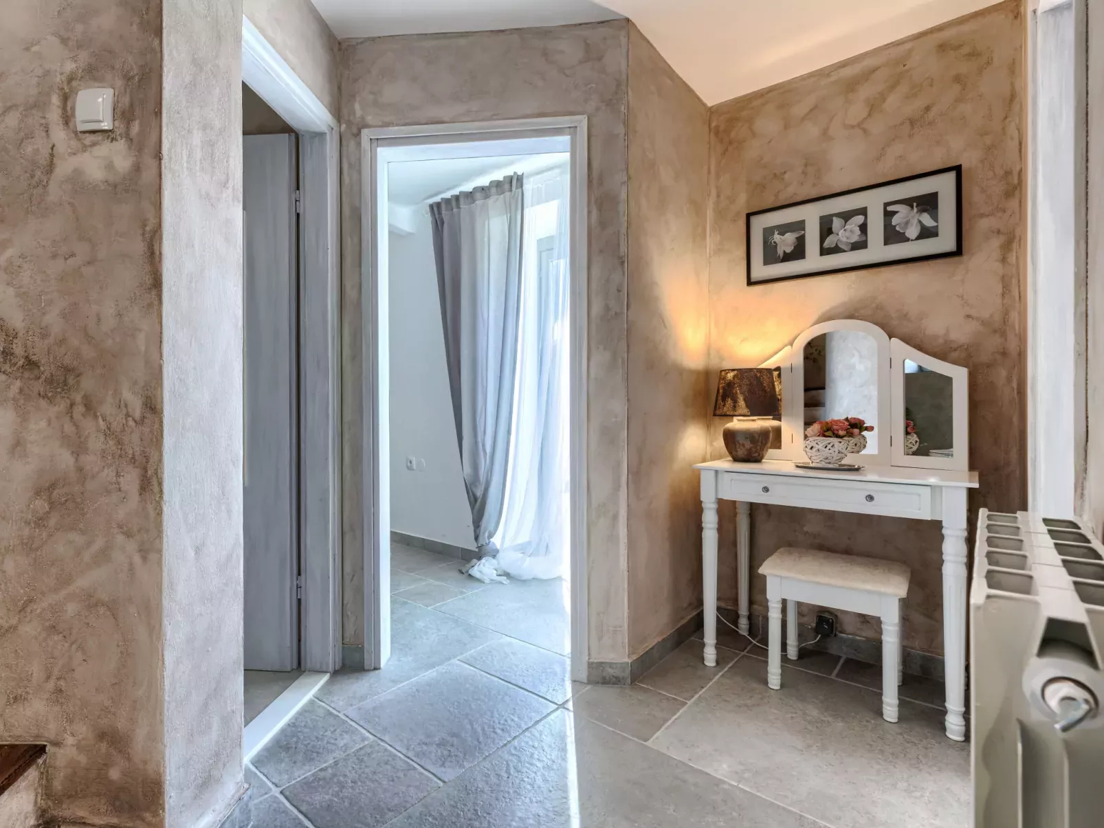 Halfvrijstaand huis 5-kamers 110 m2 op 2 verdiepingen. Stijlvol ingericht: woon-/eetkamer met Sat-TV (Flatscreen TV), stereo-installatie en air-conditioning. 1 kamer met 1 2-pers bed (160 cm, lengte 200 cm), bad/WC en Sat-TV (Flatscreen TV), air-conditioning. Uitgang naar het terras. Open keuken (4-pits kookplaat, oven, afwasmachine, magnetron, diepvriezer, elektrische koffiemachine). Aparte WC. Bovenverdieping: (wenteltrap), 1 kamer met 1 2-pers bed (160 cm, lengte 200 cm), Sat-TV (Flatscreen TV), air-conditioning. Doorgangskamer met 1 bed (90 cm, lengte 200 cm), Sat-TV (Flatscreen TV). Uitgang naar het balkon. 1 kamer met 1 2-pers bed (160 cm, lengte 200 cm), douche/WC en Sat-TV (Flatscreen TV), air-conditioning. Douche/WC. Balkon 6 m2, terras 10 m2, overdekt. Terrasmeubelen, ligstoelen. Mooi uitzicht op zee en het landschap. Ter beschikking: kluis, kinderstoel, kinderbed, haardroger. Internet (WiFi, gratis). Maximaal 1 huisdier/hond toegestaan.