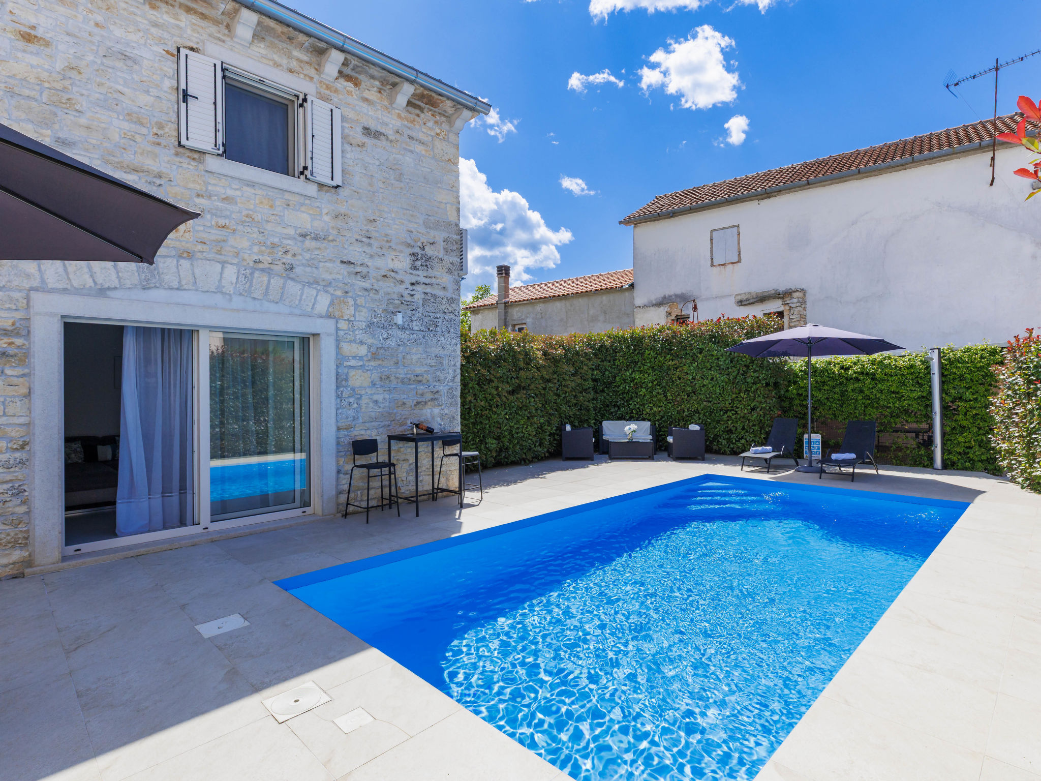 Eengezinswoning "Villa Karmen", van 2 verdiepingen, gerenoveerd in 2019. In het gehucht Gljuščići, 6 km van het centrum van Žminj, 30 km van het centrum van Rovinj, 28 km van zee. Voor alleengebruik: terrein 400 m2 (omheind), openluchtzwembad hoekig (7 x 3 m, 24 m2, 130 cm diepte, seizoensgebonden beschikbaarheid: 01.Mei. - 14.Okt.) met trap. Buitendouche, tafeltennis, terras, tuinmeubelen. In het huis: internetaansluiting, wasmachine. Parkeerplaats (voor 3 auto's) op het terrein. Winkel 500 m, restaurant 1 km, bushalte 6.1 km, rotsstrand 28 km.