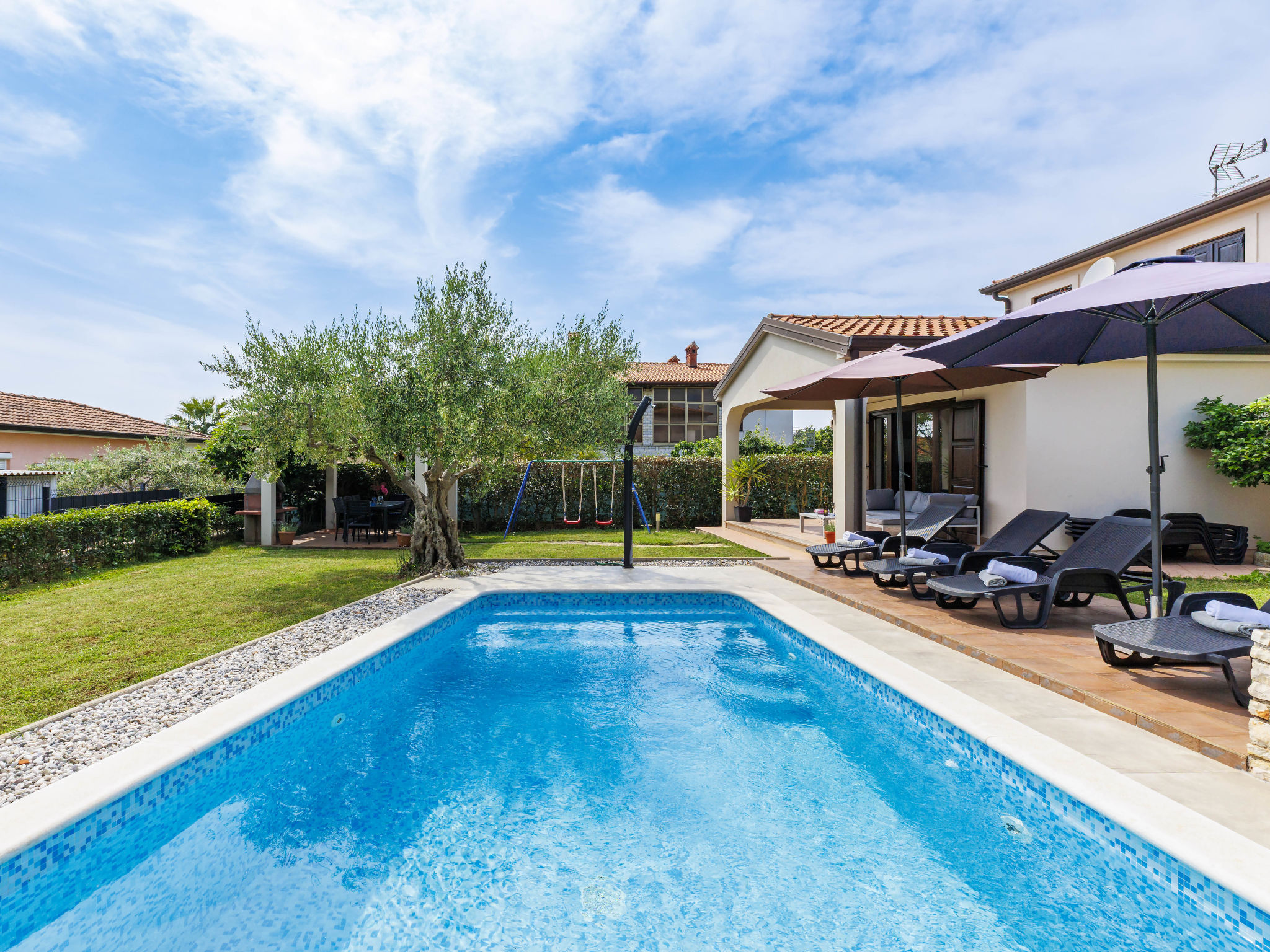 Stancijeta 3 km van Novigrad: Zeer mooi eengezinswoning "Villa Lucas", van 2 verdiepingen. In het gehucht Stancijeta, 18 km van het centrum van Poreč, 15 km van het centrum van Umag, rustige, zonnige ligging, 3 km van zee, 3 km van het strand. Voor alleengebruik: terrein 900 m2 (omheind), verzorgde tuin, openluchtzwembad (25 m2, 150 cm diepte, seizoensgebonden beschikbaarheid: 01.Mei. - 01.Okt.) met trap. Buitendouche, barbecue, kinderspeelplaats, onderhoud zwembad door de eigenaar/tuinman. In het huis: internetaansluiting. Parkeerplaats (voor 3 auto's) bij het huis. Winkel 3 km, restaurant 300 m, bushalte 3 km, treinstation 35 km, kiezelstrand 3 km. Golfterrein (18 holes) 25 km, wandelroutes, vanaf het huis, fietspad 20 m. Attracties in de buurt: Aquapark 4 km. Geschikt voor families. De eigenaar accepteert geen groepen.