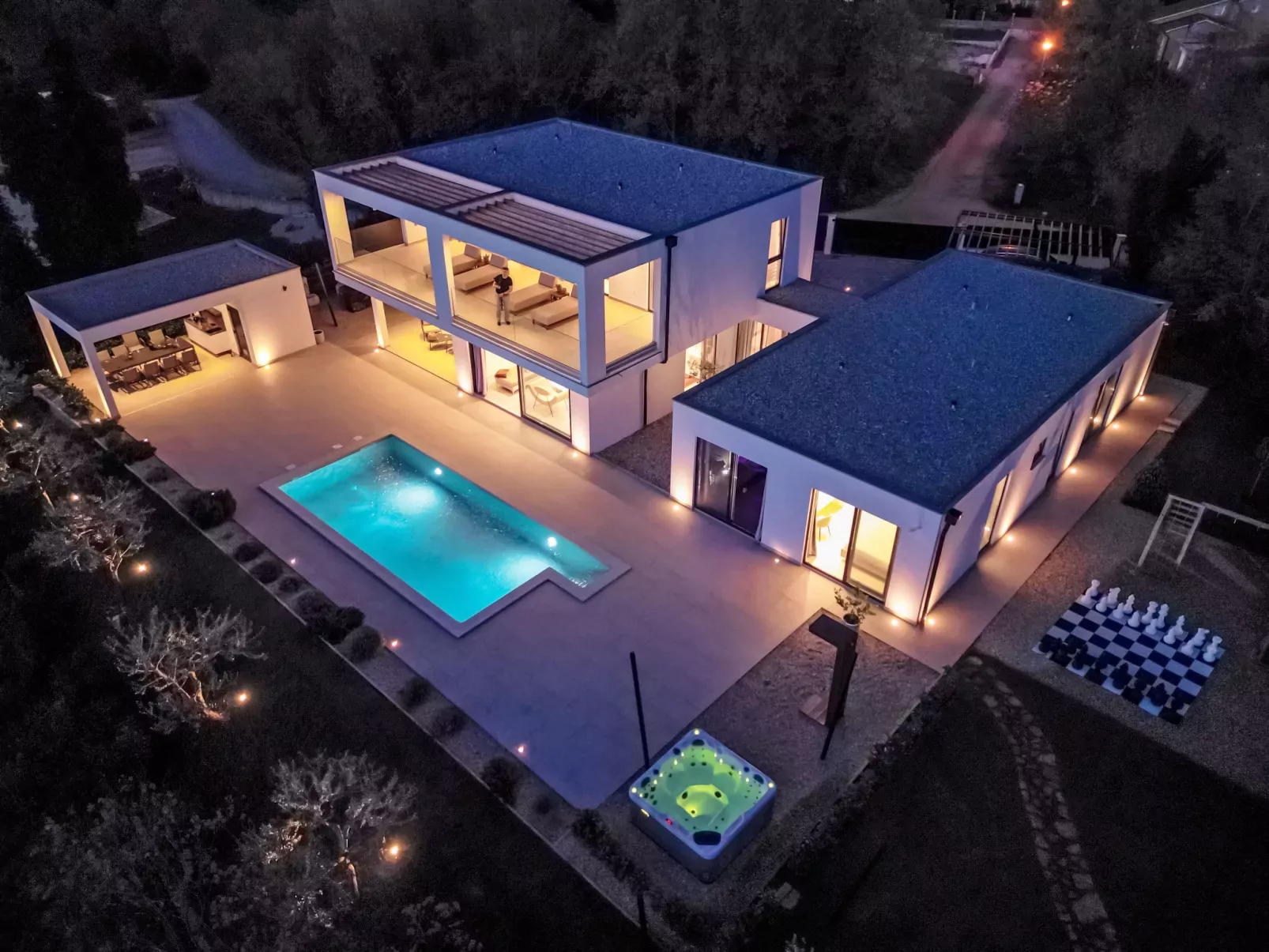 Villa 5-kamers 280 m2 op 2 verdiepingen. Zeer mooi en luxueus ingericht: groot woon-/eetkamer met Sat-TV. Uitgang naar het terras, naar het zwembad. 1 kamer met 1 2-pers bed (200 cm, lengte 210 cm), douche/WC en Sat-TV. Uitgang naar de tuin. 1 kamer met 1 2-pers bed (180 cm, lengte 210 cm), douche/bidet/WC en Sat-TV. Uitgang naar het terras, naar het zwembad. Open keuken (oven, afwasmachine, 5 inductiekookplaten, broodrooster, waterkoker, magnetron, diepvriezer, elektrische koffiemachine). Uitgang naar het terras, naar het zwembad. Douche, aparte WC. Vloerverwarming. Bovenverdieping: 1 kamer met 1 2-pers bed (200 cm, lengte 210 cm), douche/bidet/WC en Sat-TV. Uitgang naar het balkon. 1 kamer met 1 2-pers bed (200 cm, lengte 210 cm), douche/WC en Sat-TV. Uitgang naar het balkon. Vloerverwarming, heteluchtverwarming. Groot balkon 30 m2, terras 15 m2, overdekt. Terrasmeubelen, balkonmeubilair, ligstoelen. Uitzicht op het landschap. Ter beschikking: kluis, strijkijzer, haardroger. Internet (Internet (WiFi), gratis). Rookvrij huis. Brandblusser.