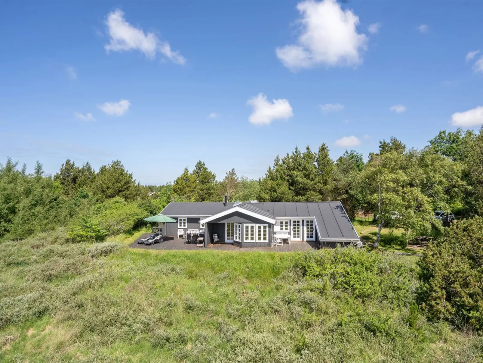 Eengezinswoning, bouwjaar 1980. 3.4 km van zee. Voor alleengebruik: wild terrein 2.515 m2. Terras (80 m2), barbecue, kinderspeelplaats (schommel). In het huis: wasmachine. Parkeerplaats bij het huis. Levensmiddelenwinkel 4 km. Golfterrein 10.8 km. De eigenaar accepteert geen jeugdgroepen.
